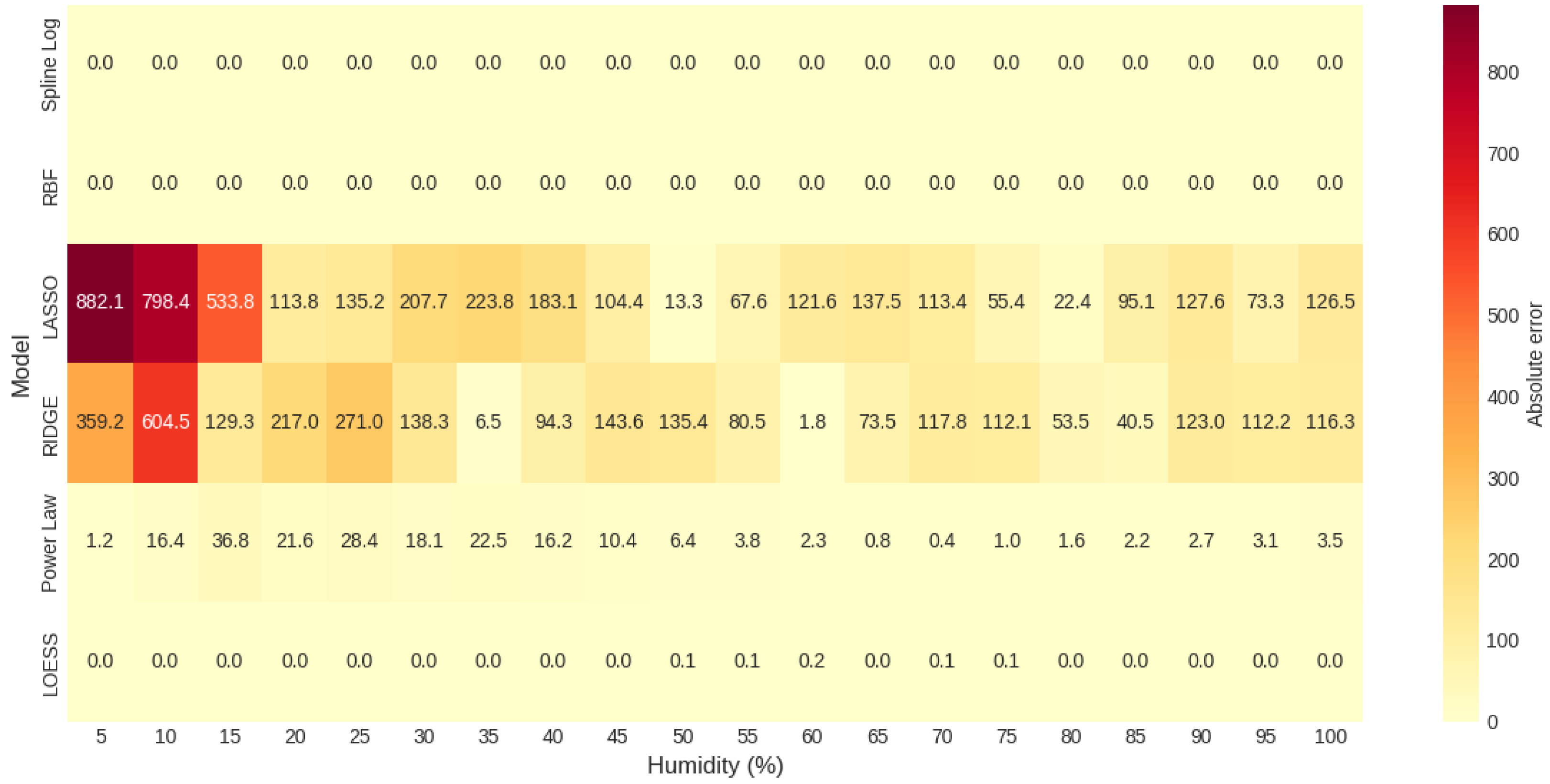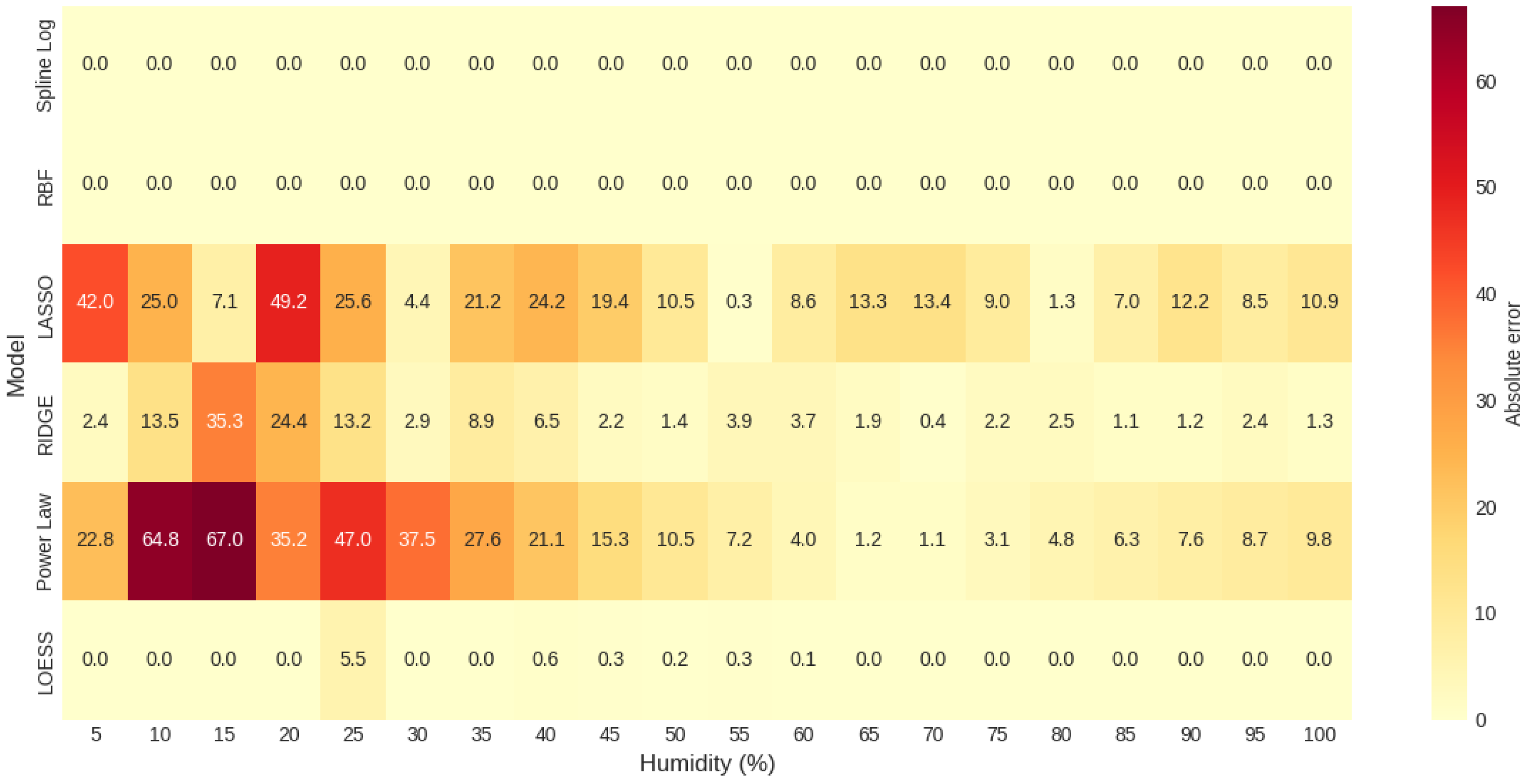 Humidity (%)RealSpline-LogRBFLASSORIDGEPower LawSegmented Equation