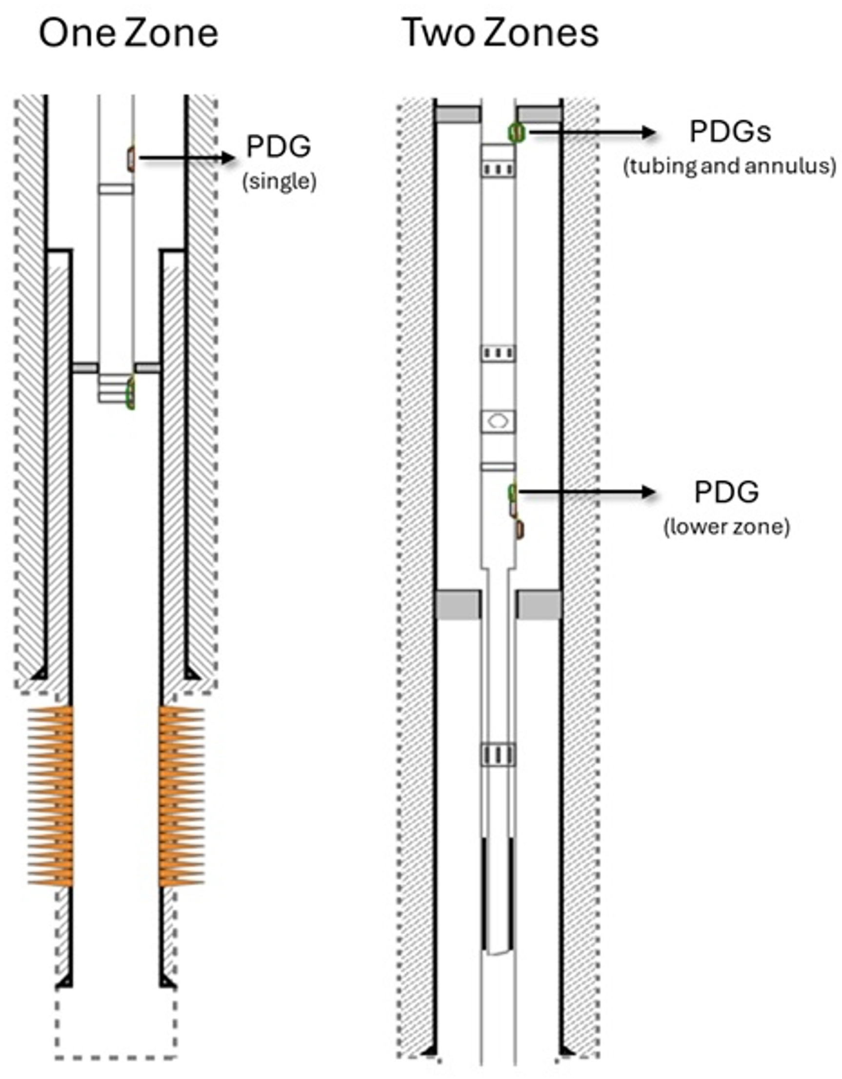 Bottom-hole: Pressure and temperature via permanent downhole gauges (PDGs).