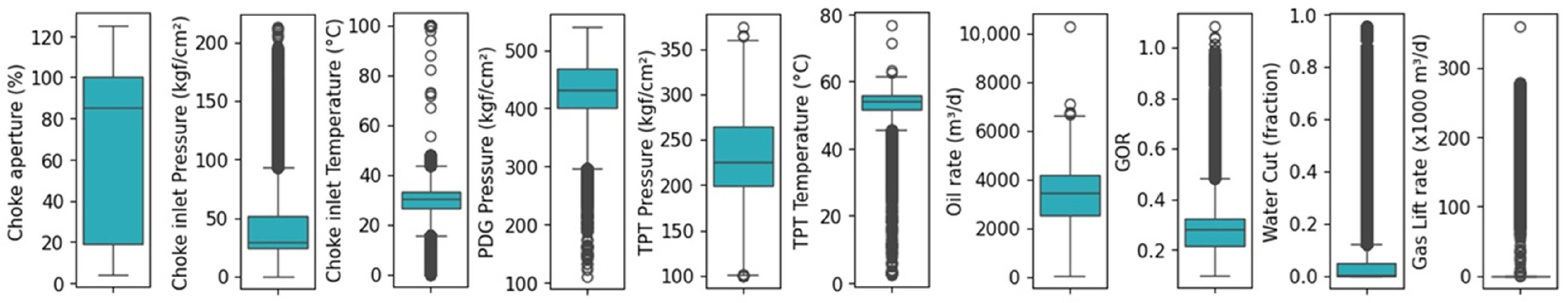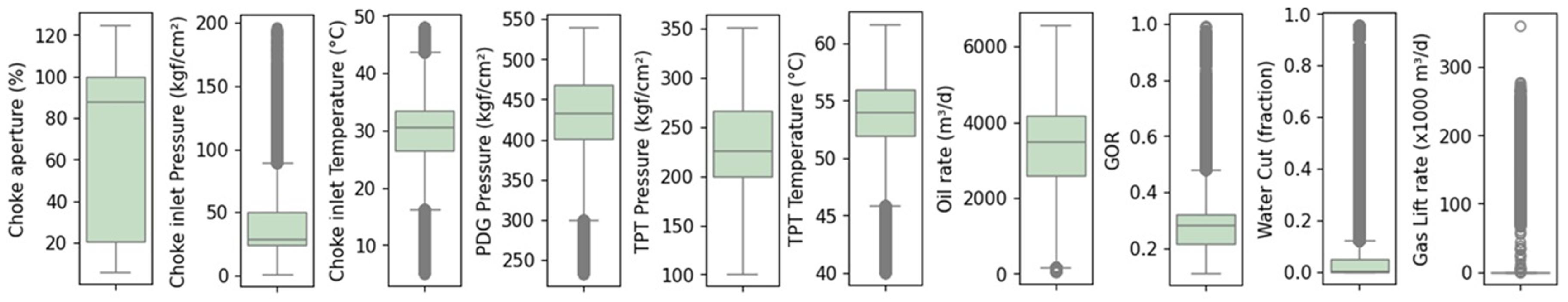 An important requirement is obtaining a comprehensive method applicable to fields with varying production conditions. This includes newly drilled wells with high production rates, original gas–oil ratio (GOR), and near-zero water cut, as well as mature wells that have been producing for over a decade. These older wells may be located in more depleted areas of the field, resulting in lower flowing pressures and production rates, and may be influenced by injection processes, leading to significantly higher GOR and water cut. Such diverse conditions can lead to varying relationships between the input variables and the target variable in our estimation problem. Addressing this variability is crucial to ensuring the robustness and applicability of the proposed methodology across a wide range of field scenarios.
