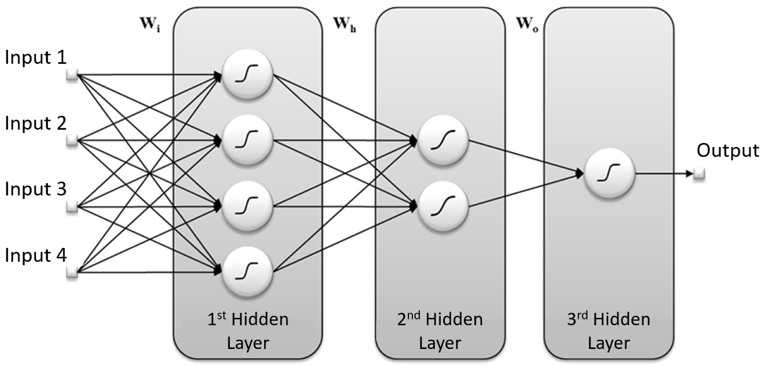 Campos et al. estimated flowing BHP in oil wells using bottom-hole temperature, wellhead pressure, flow rates, depth, and tubing internal diameter, feeding a new hybrid model consisting of radial-based functions (RBF) neural networks, with weights optimized via particle swarm optimization (PSO) [