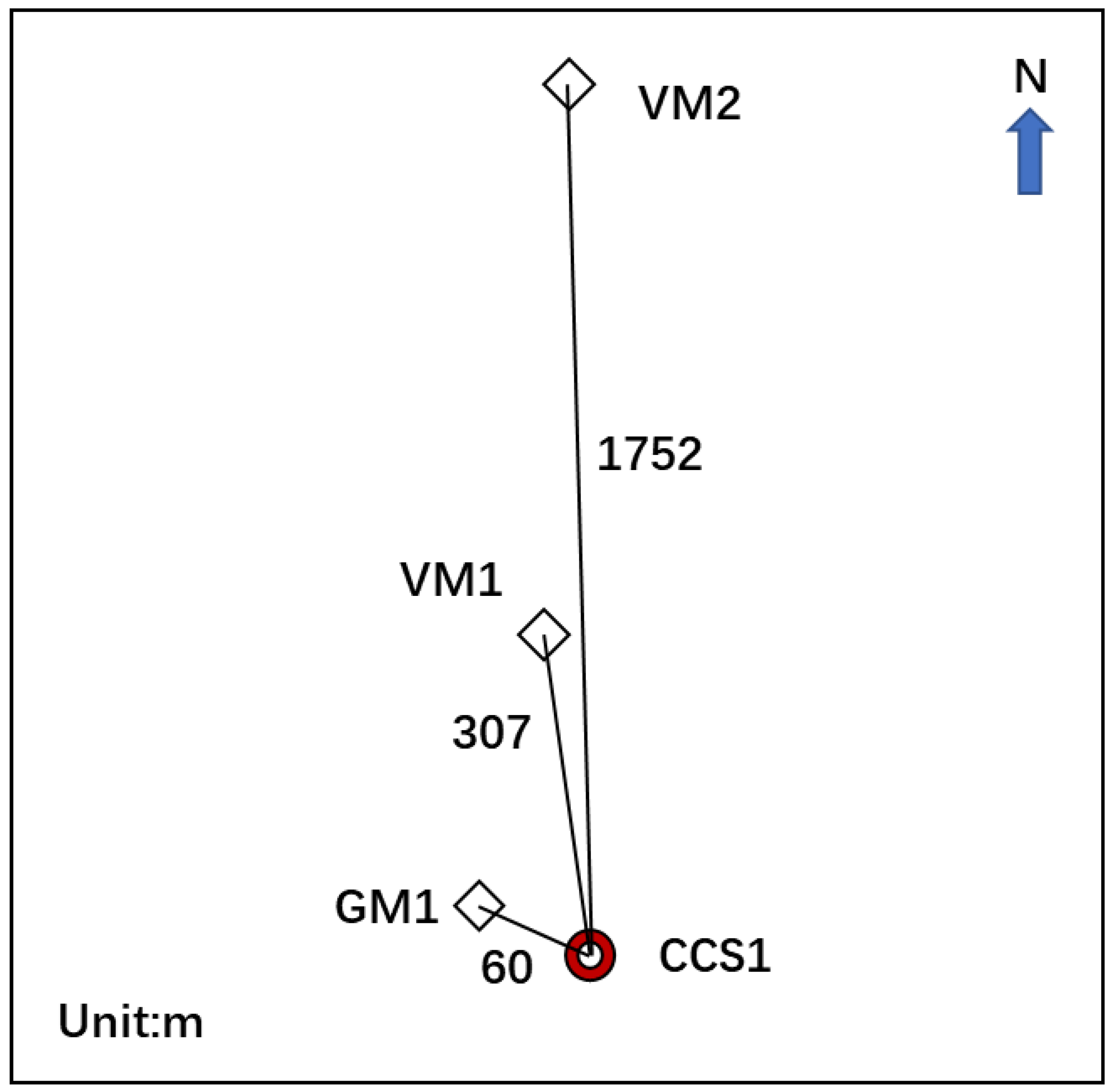 - Ma, Z.P.; Wang, Y.B.; Zhang, T.; Liu, Y.; Liang, K.Q.; Shen, Z.Z.; Yang, K. Case analysis and suggestions on CO2 leakage monitoring pointdeployment method in CCUS project. China Min. Mag. 2025, 34, 141–148. [Google Scholar]