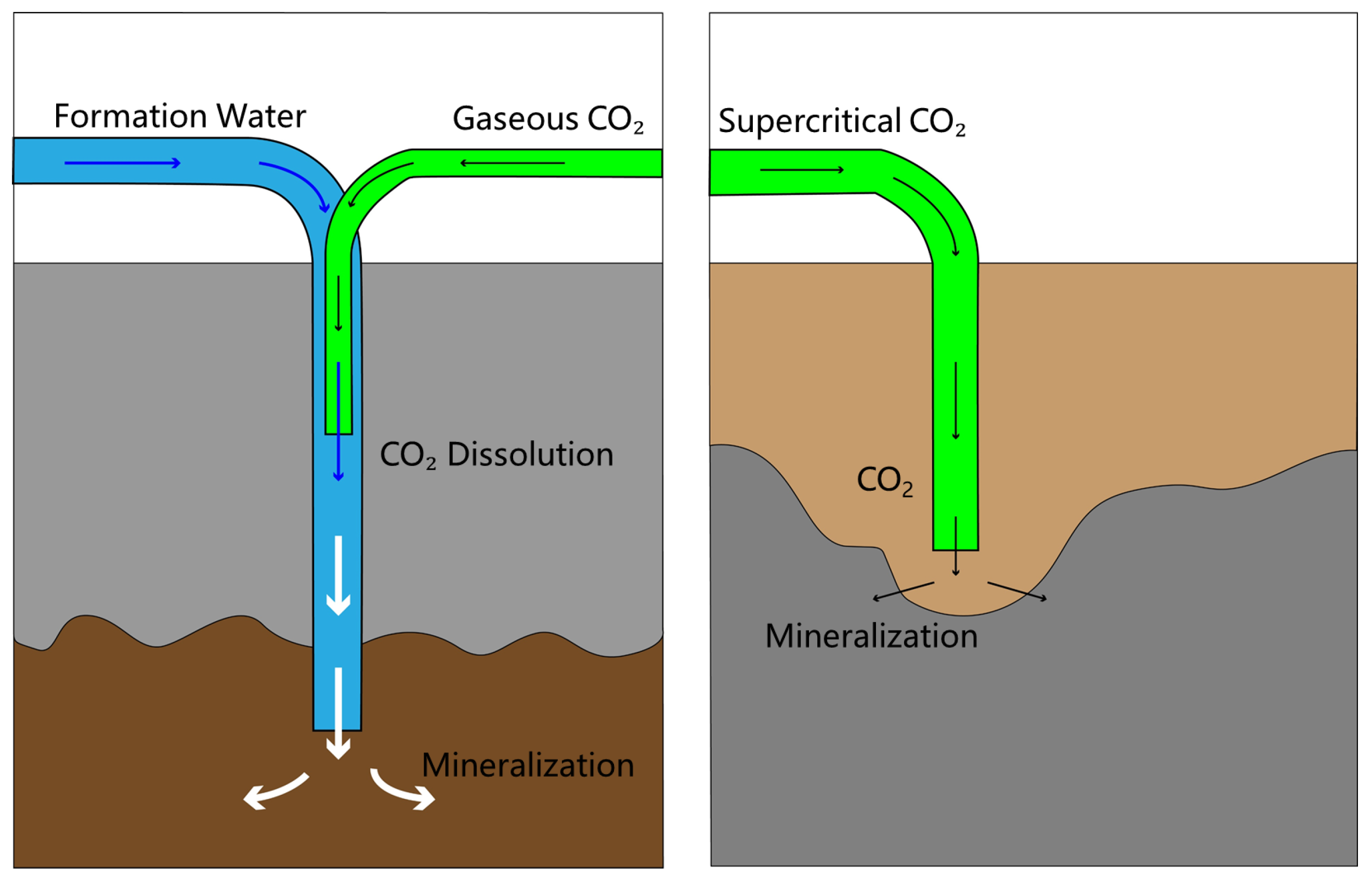 | Carbfix | 1 | 1 | N/A | Slightly higher than 2.5 MPa | N/A | N/A | Stage 1: 6.05 Stage 2: 0.864–4.32 | CO2 dissolves in water before entering the formation |
