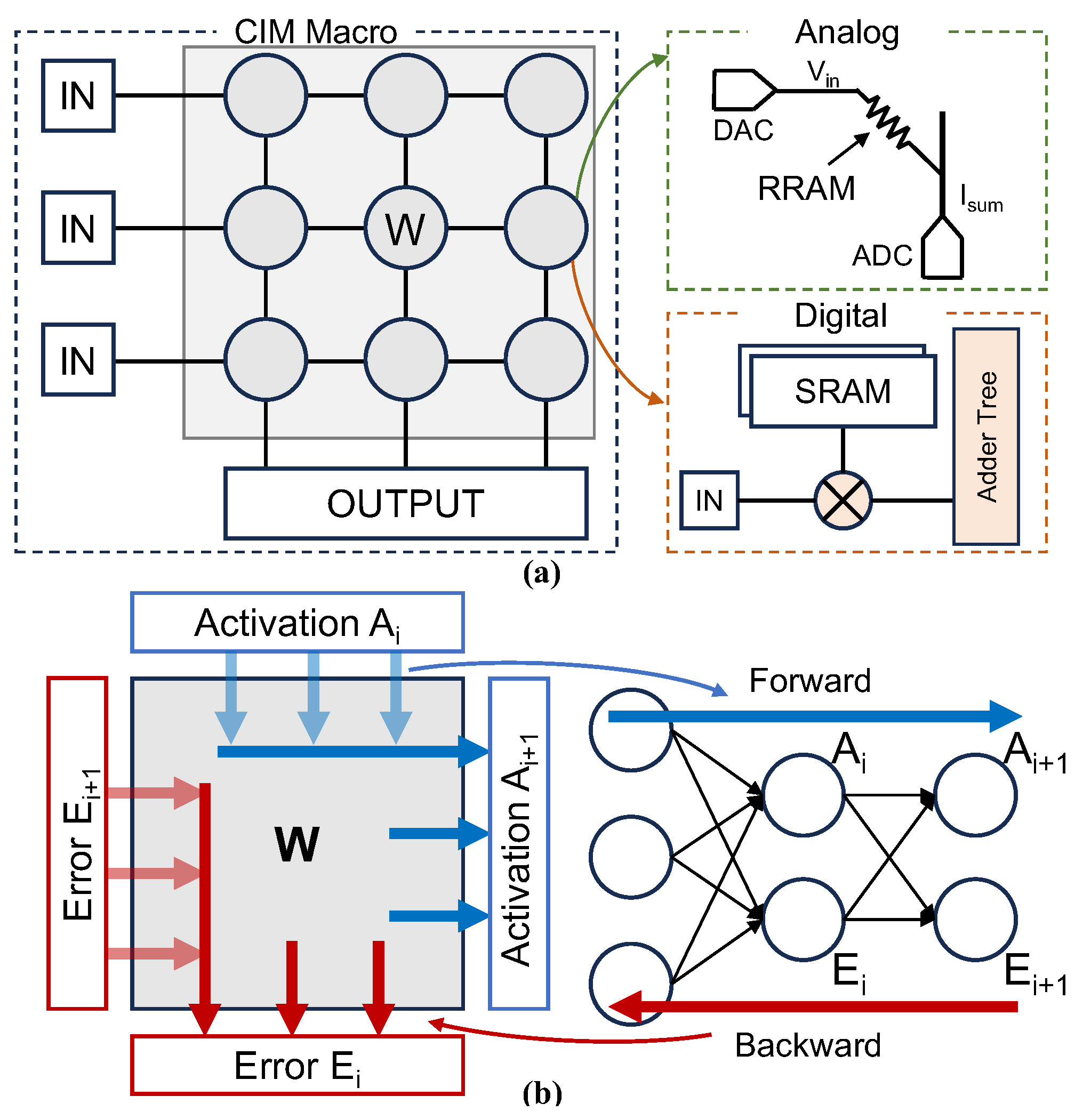 - Wang, Z.; Nalla, P.S.; Krishnan, G.; Joshi, R.V.; Cady, N.C.; Fan, D.; Seo, J.; Cao, Y. Digital-Assisted Analog In-Memory Computing with RRAM Devices. In Proceedings of the 2023 International VLSI Symposium on Technology, Systems and Applications (VLSI-TSA/VLSI-DAT), HsinChu, Taiwan, 17–20 April 2023; pp. 1–4. [Google Scholar]