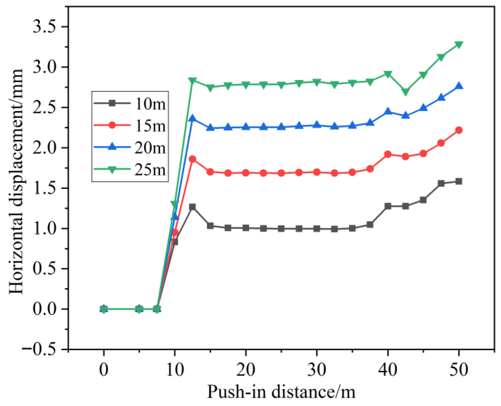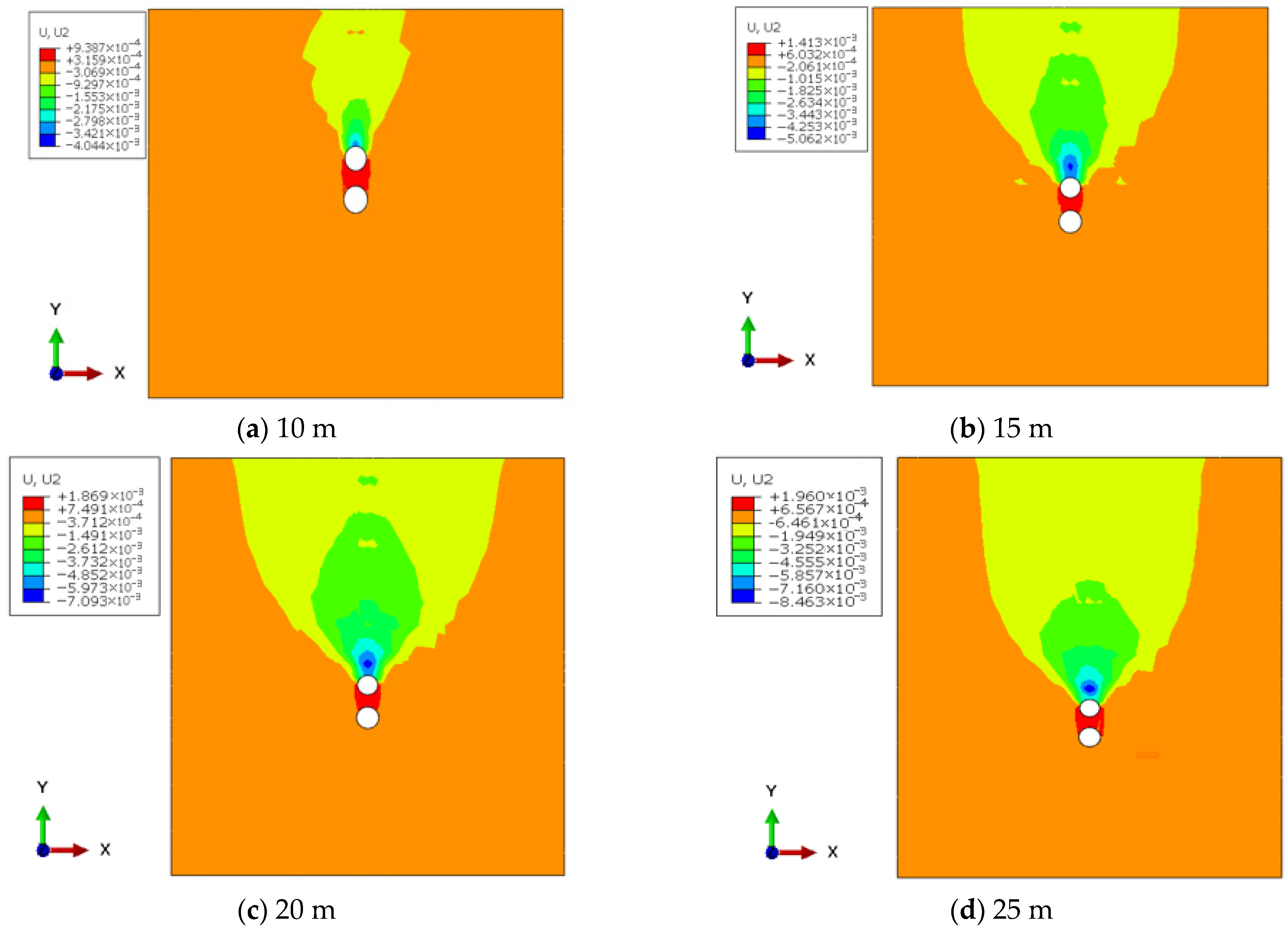4.1.1. Influence of Tunnel Burial Depth on Surrounding Rock Displacement