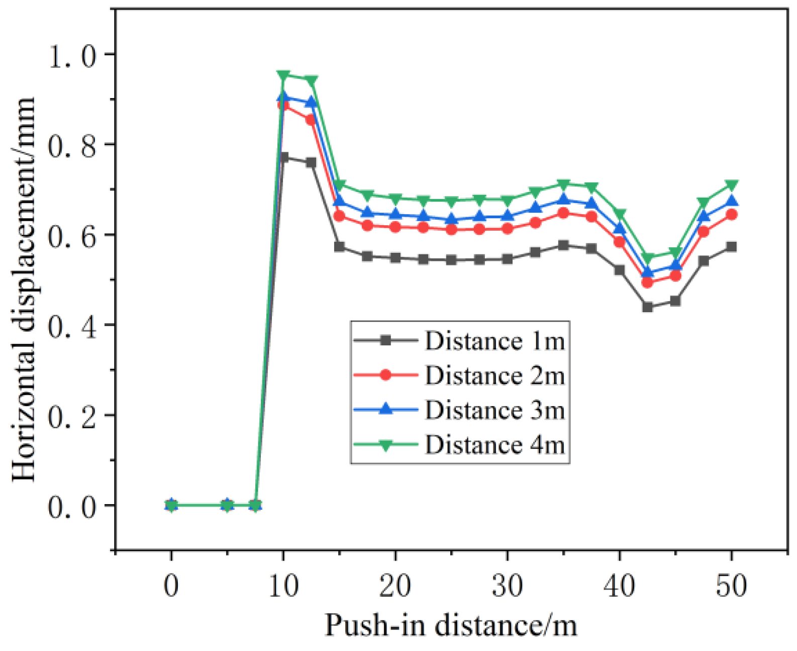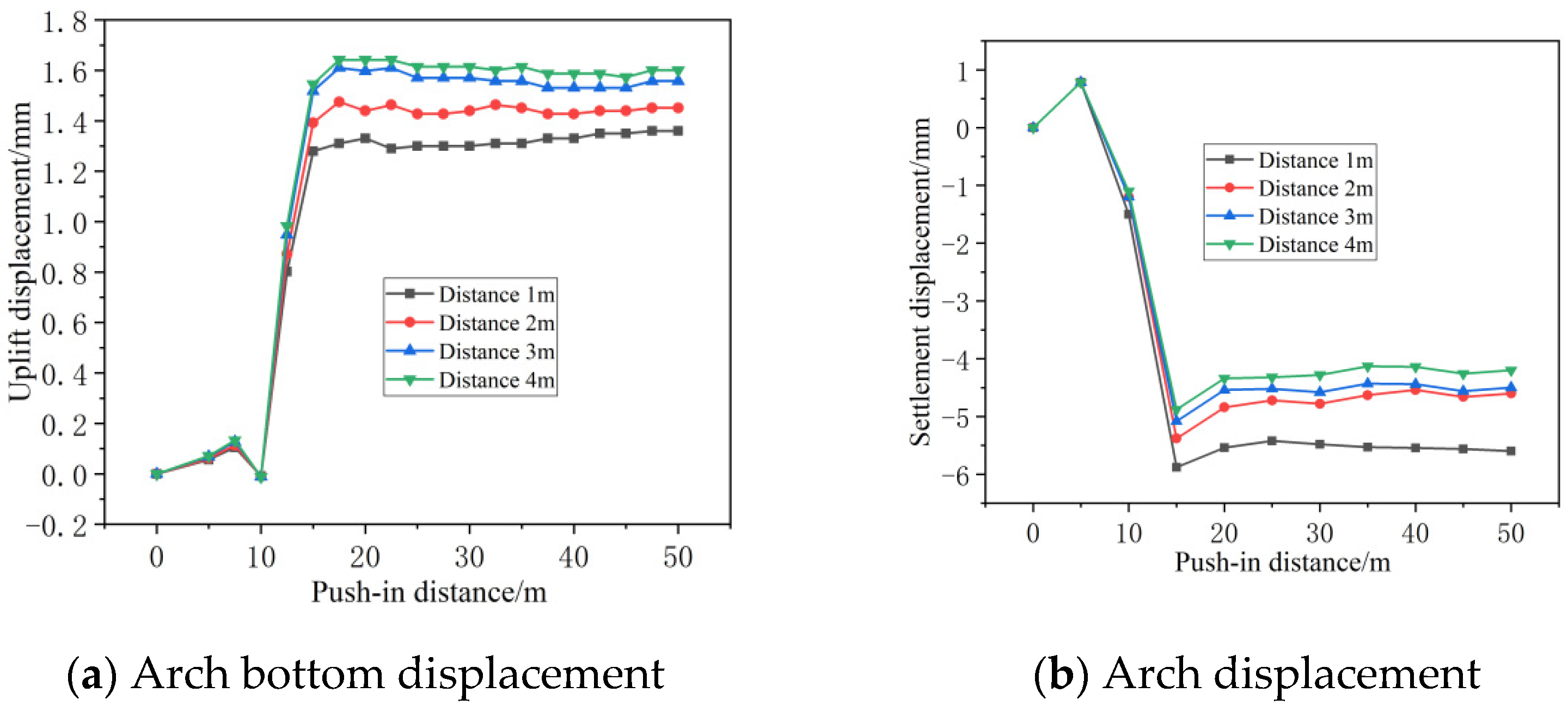 4.3.4. Effect of Spacing Between Karst Cavities and Tunnels on Segment Displacement