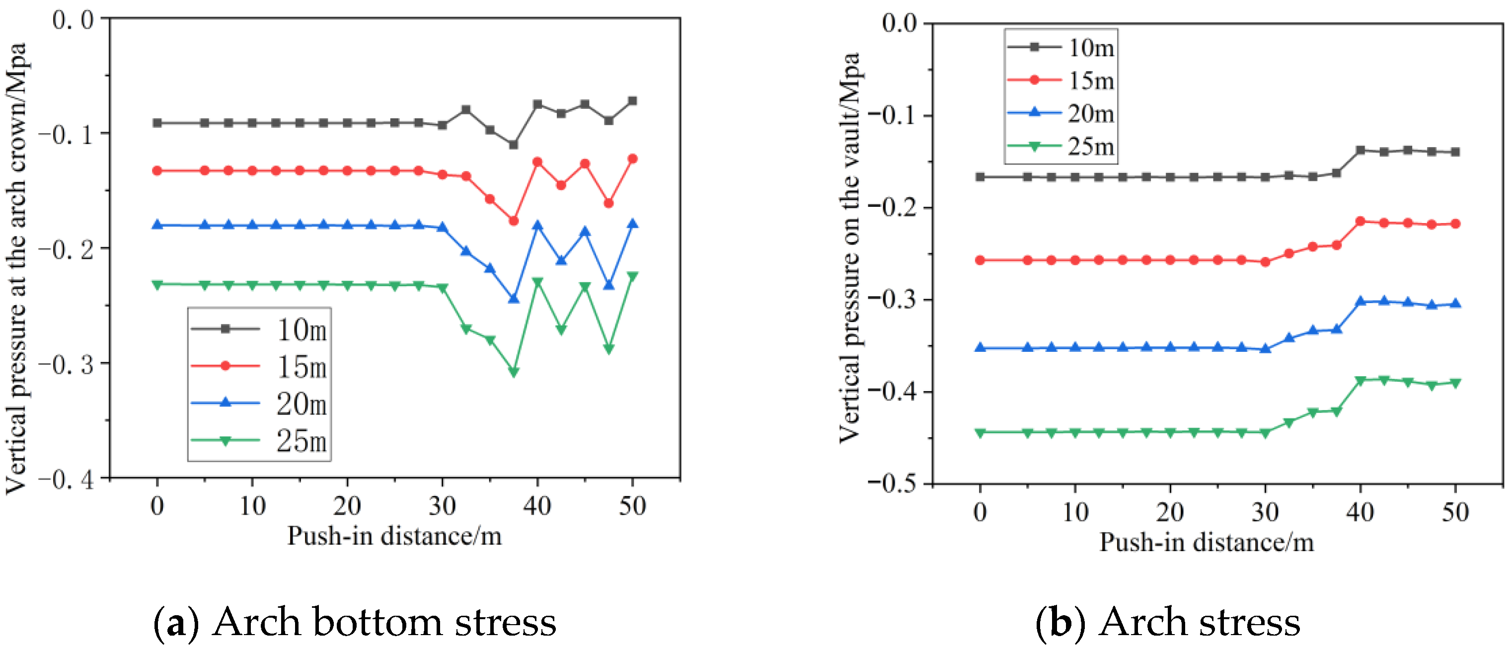 4.2.1. Effect of Tunnel Burial Depth on Surrounding Rock Stress