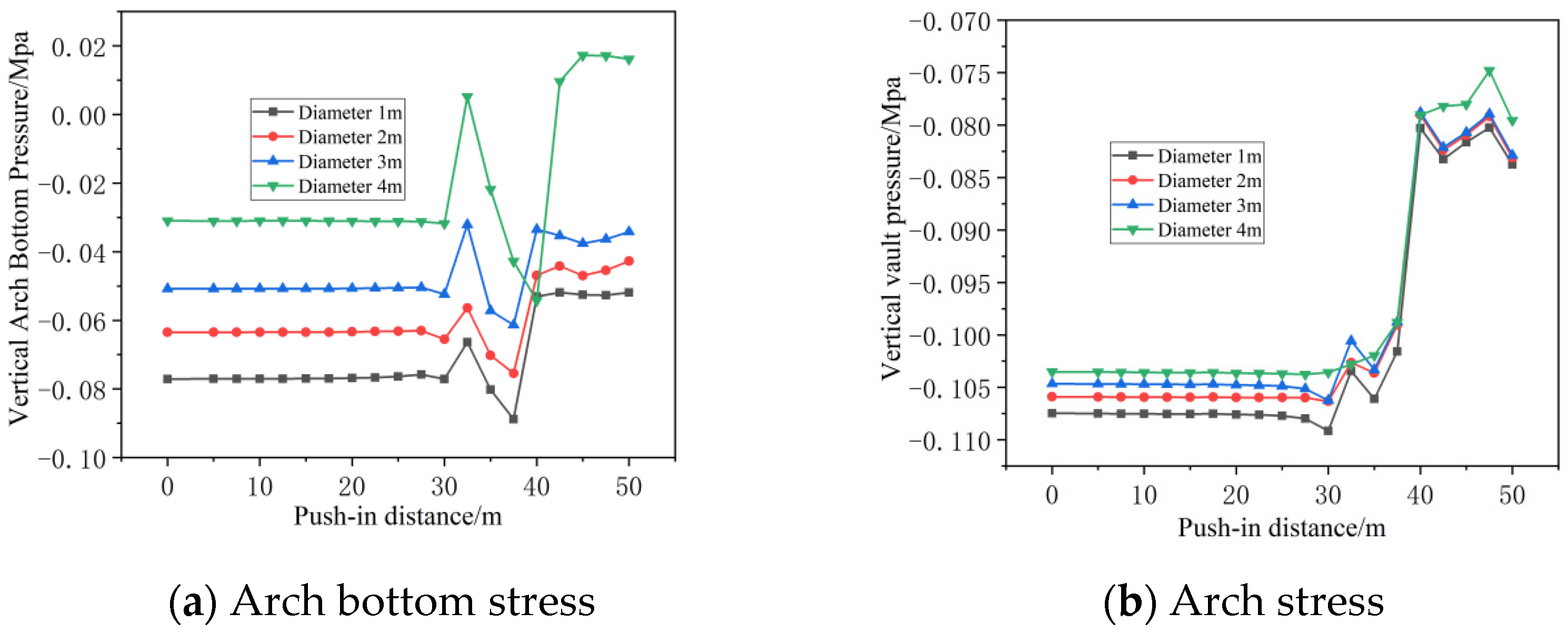 4.2.2. Influence of Cave Size on Tunnel Rock Mass Stress