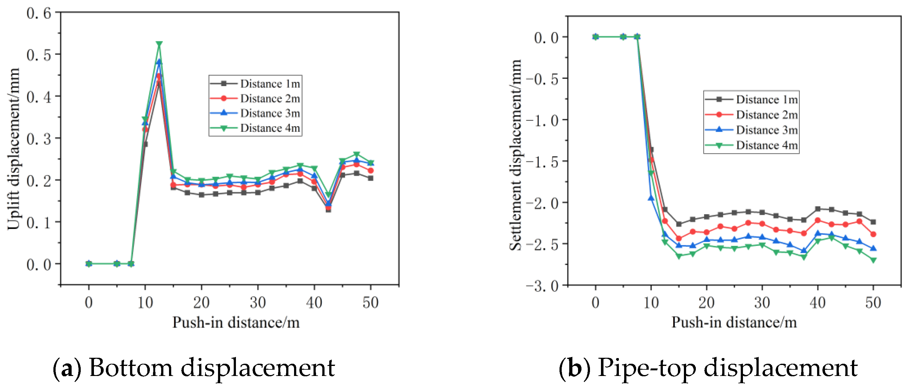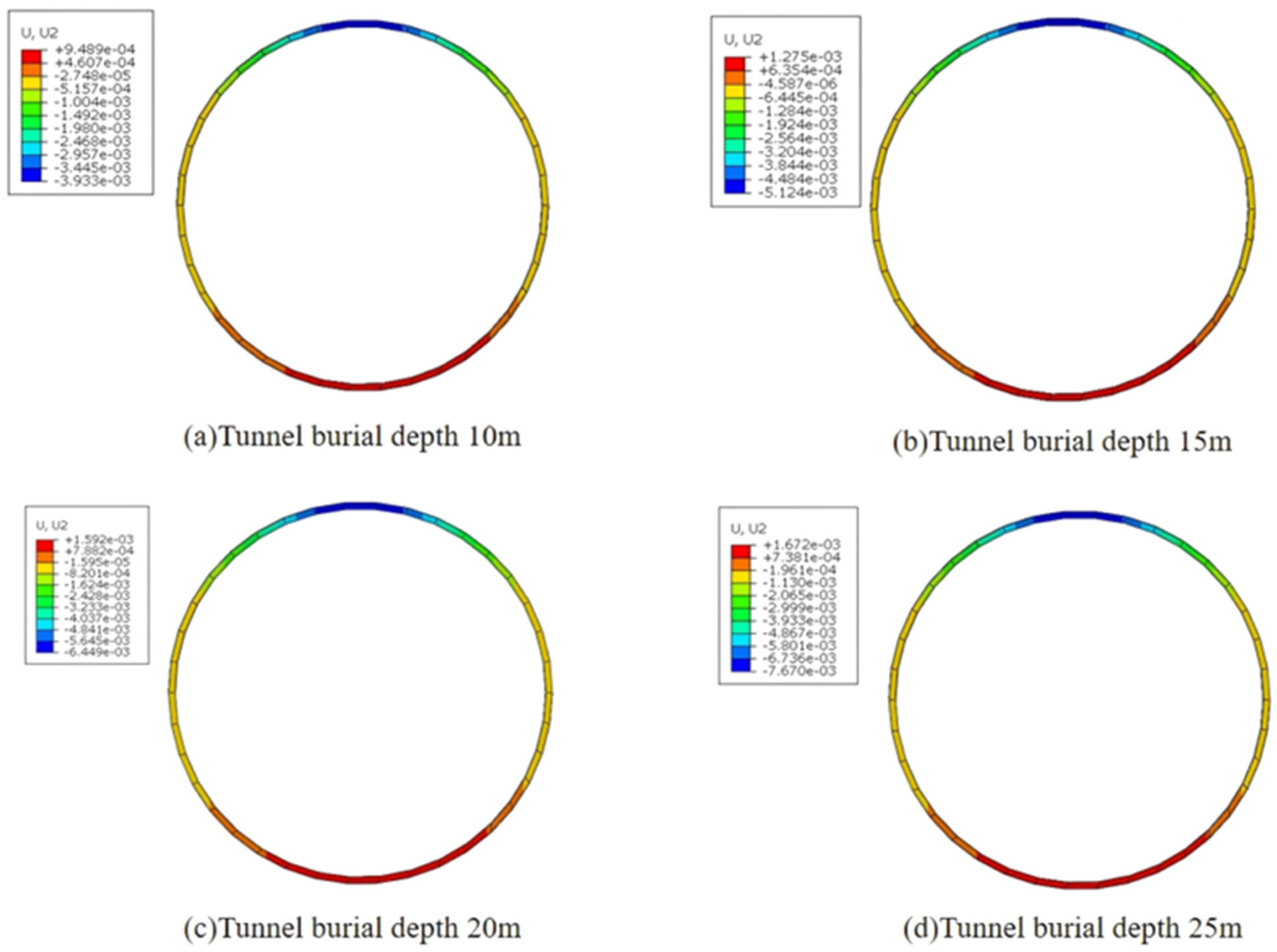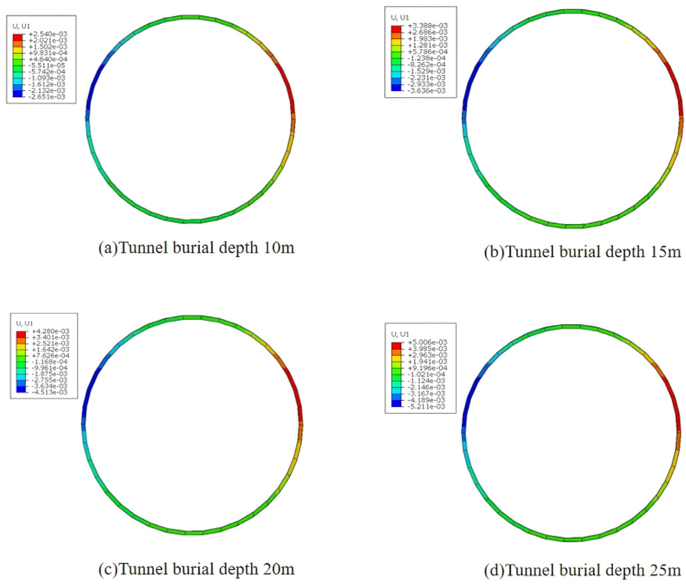 4.3.1. Effect of Tunnel Burial Depth on Segment Displacement