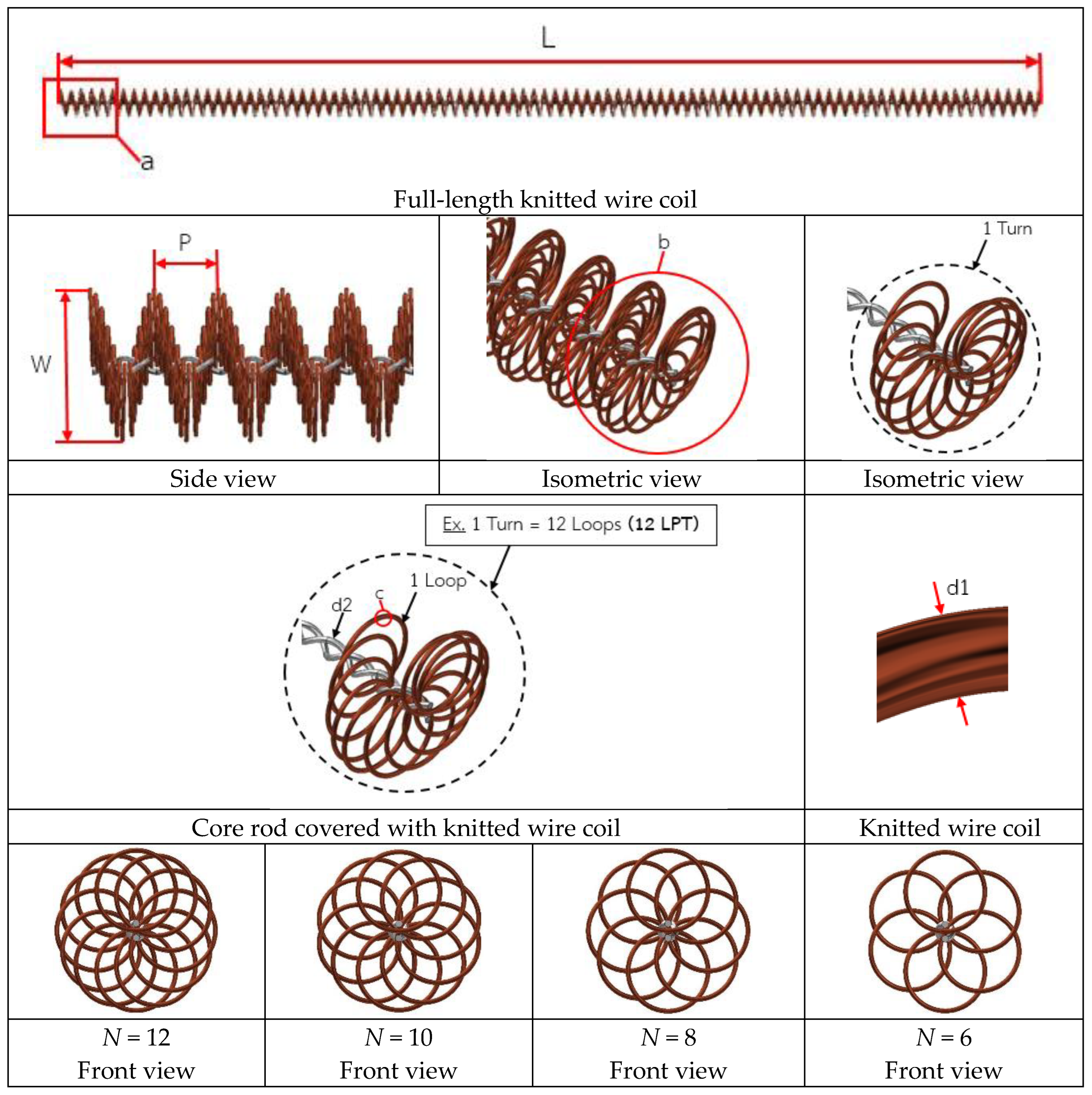 Figure 2. Details of knitted wire coil turbulator geometries.