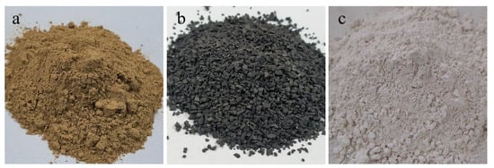 Test materials: (a) expansive soil; (b) coal gangue; (c) magnesium oxide.