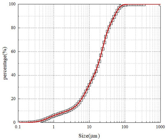 Using the laser particle size analyzer, the particle size curve of the test expansive soil is shown in Figure 2. According to Figure 2, d10 (the mass of soil particles smaller than this particle size accounting for 10% of the total mass of soil particles) = 0.002 mm, d30 (the mass of soil particles smaller than this particle size accounting for 30% of the total mass of soil particles) = 0.009 mm, d60 (the mass of soil particles smaller than this particle size accounting for 60% of the total mass of soil particles) = 0.022 mm, the unevenness coefficient and curvature coefficient Cu (coefficient of nonuniformity) = 11, and Cc (coefficient of curvature) = 1.84, indicating that the expansive soil has good gradation.