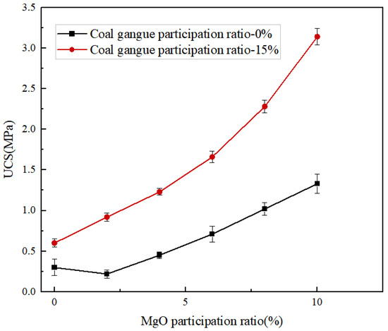 3.2. Influence of Coal Gangue and Magnesium Oxide on Unconfined Compressive Strength