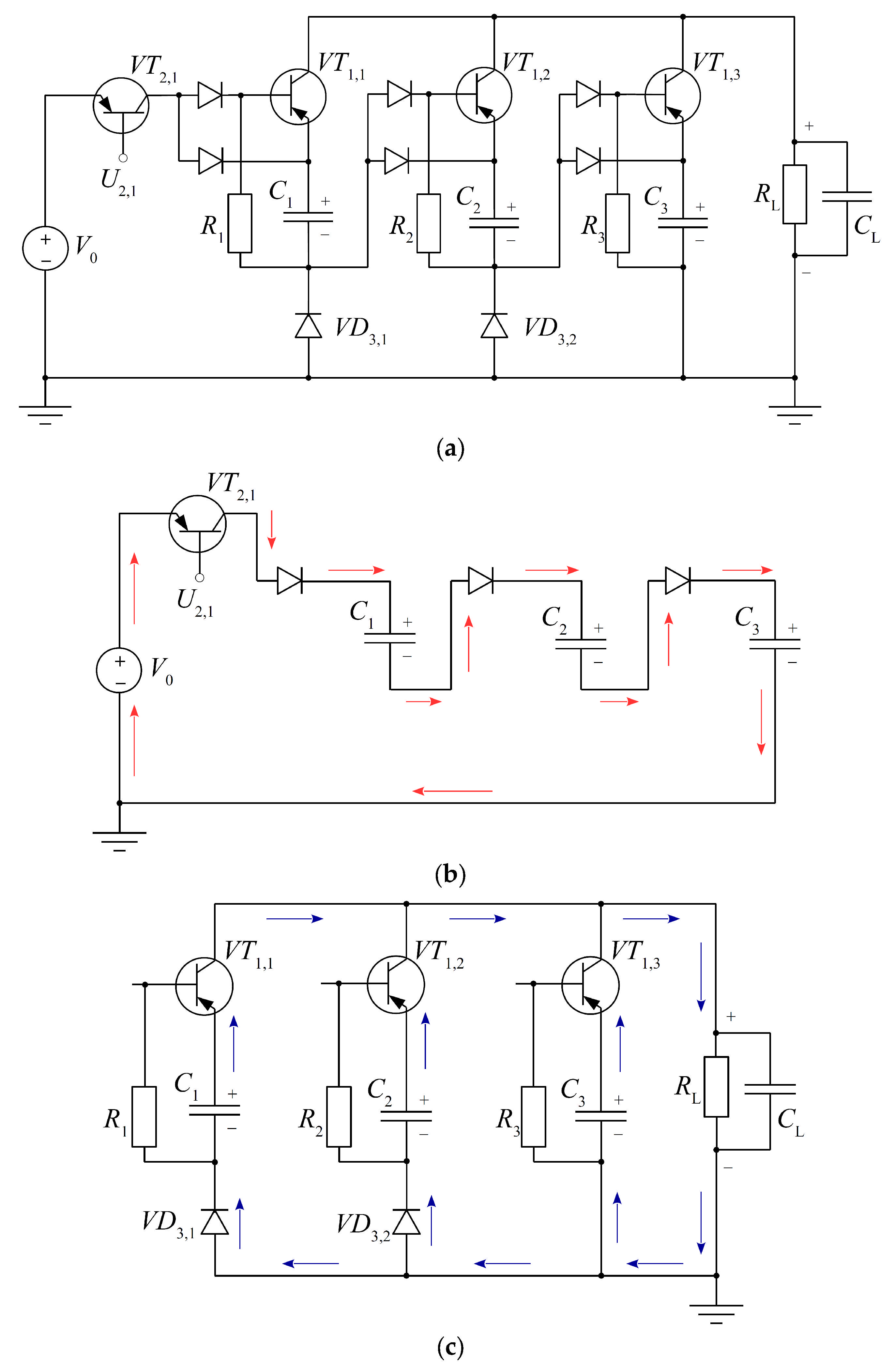 2. Analysis of the Voltage Divider Operation with Transistor–Diode Commutation of Capacitors