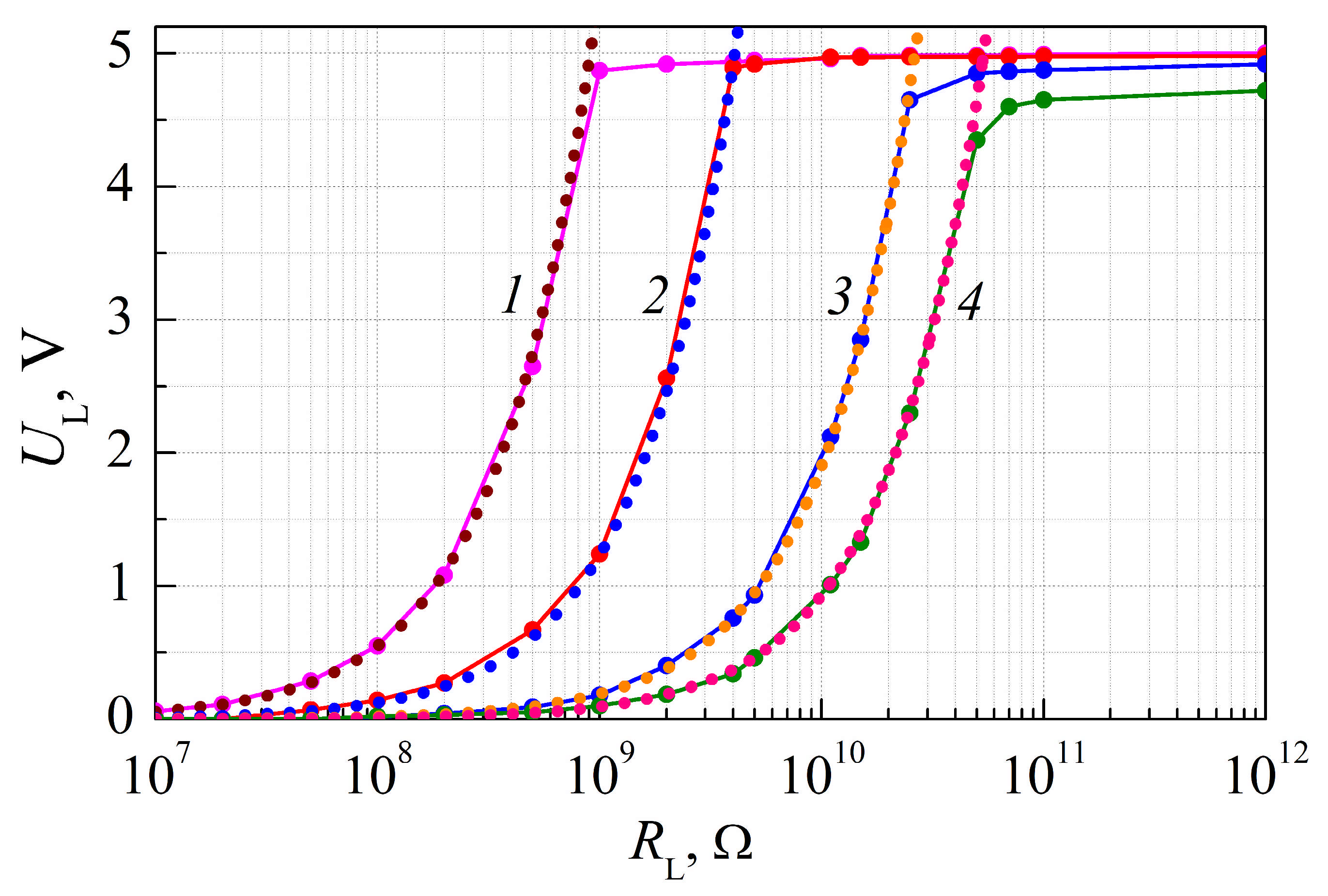 Thus, in the process of the voltage divider design, it is necessary to simultaneously take into account the dependence of the load voltage on the load resistance, the dependence of the efficiency on the load and limiting resistances, as well as the dependence of the efficiency on the cycle duration.