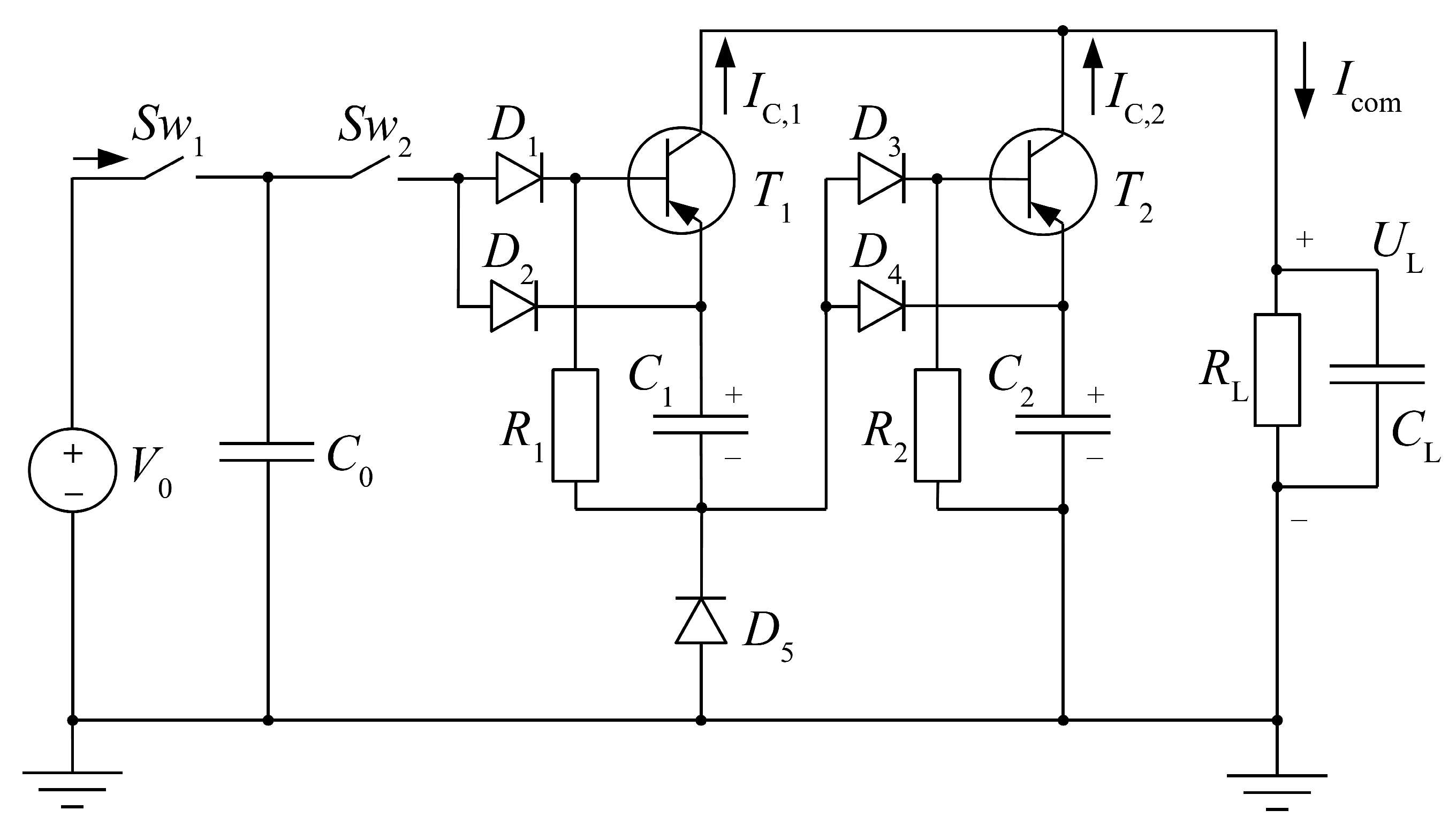 In order to analyze the advantages and disadvantages of this circuit, we consider the operation of this voltage divider, assuming that all the circuit elements of the same type have identical values. Considering that the operation of the diode–capacitor voltage divider is significantly influenced by the reverse capacitances of the discharging diodes [