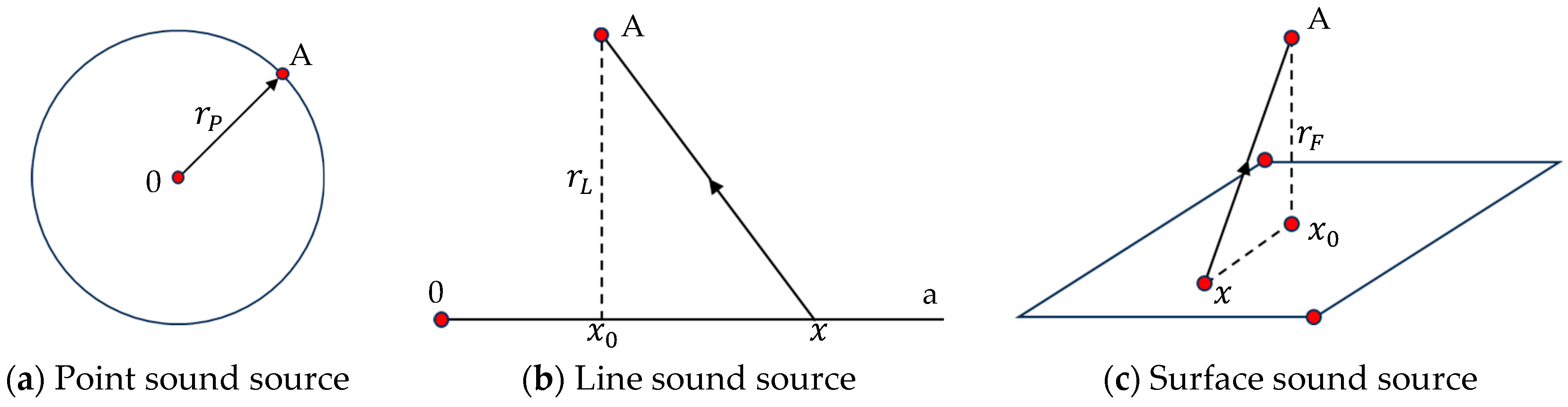 S, the normal component of sound intensity over the area element ds. To more accurately establish the sound field model, the sound sources were classified into point, line, and surface sources based on their geometric shapes.