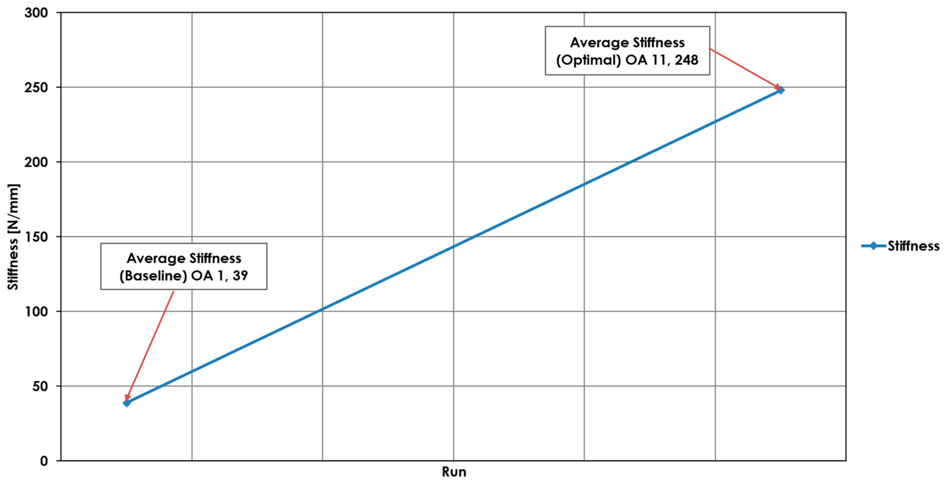 - Performance Improvement: The methodology identified a robust optimal configuration that increased stiffness to 248 N/mm and a substantial 635% improvement over the baseline design (39 N/mm). This demonstrates the approach’s capacity to deliver dramatic performance gains from the early design stages.