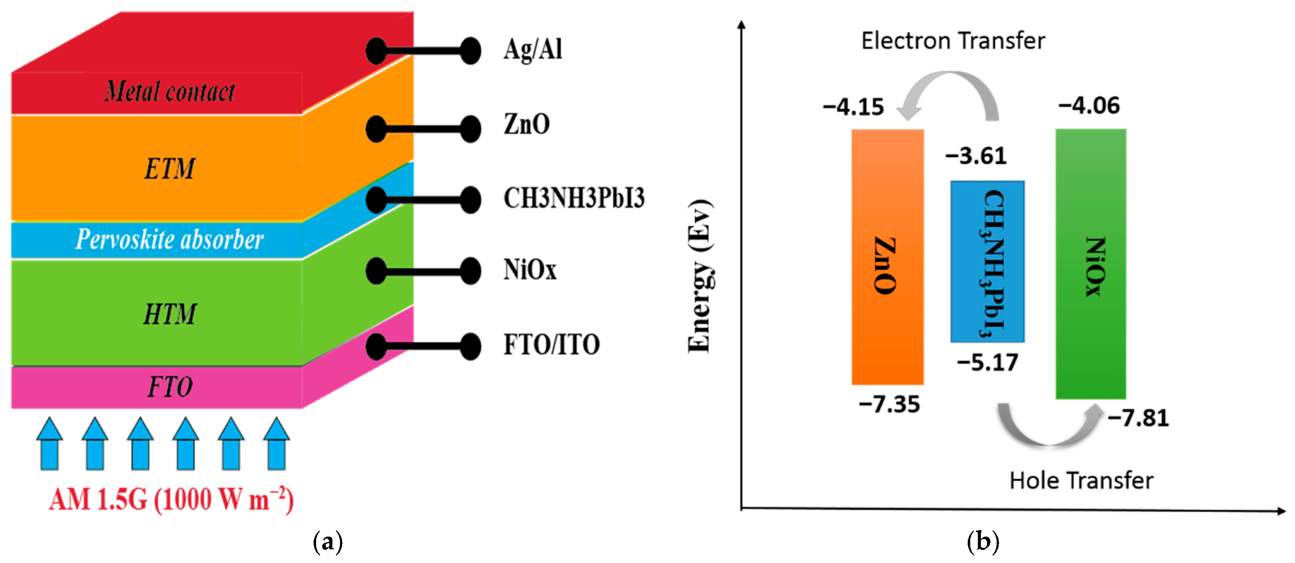 - Raoui, Y.; Ez-Zahraouy, H.; Tahiri, N.; El Bounagui, O.; Ahmad, S.; Kazim, S. Performance analysis of MAPbI3 based perovskite solar cells employing diverse charge selective contacts: Simulation study. Sol. Energy 2019, 193, 948–955. [Google Scholar] [CrossRef]