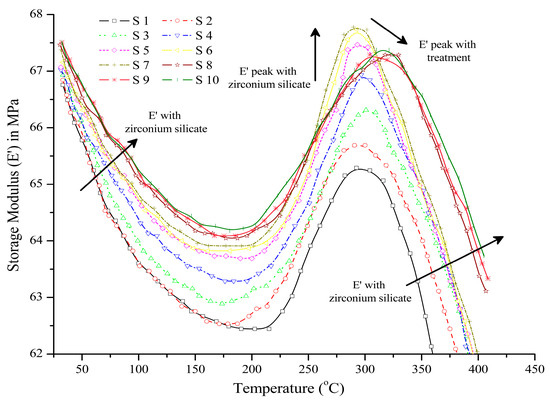 The storage modulus is a critical mechanical property that reflects the stiffness and resistance to elastic deformation of materials. In aluminum 7075 reinforced with zirconium silicate (ZrSiO4) and a wettability agent, the storage modulus increases, indicating enhanced stiffness and improved structural performance. The wettability agent enhances the dispersion and bonding of ZrSiO4, further increasing the composite’s stiffness. Additionally, a higher storage modulus improves the material’s thermal and mechanical stability, making it suitable for dynamic applications.