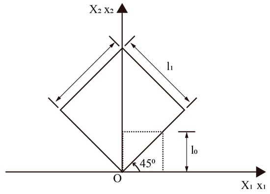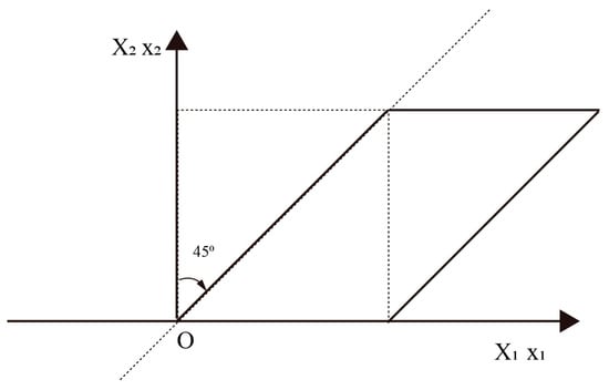The relationship between the post-deformation coordinates and the pre-deformation coordinates for the 45° rotational tensile elastic deformation is given by the following []: