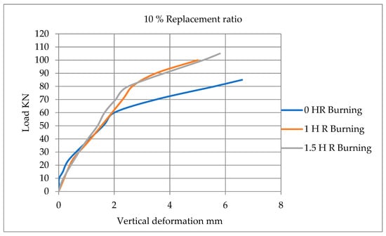 Load–deflection curves of beams with a replacement ratio of 10%.