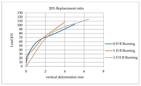 Load–deflection curves of beams with a replacement ratio of 20%.