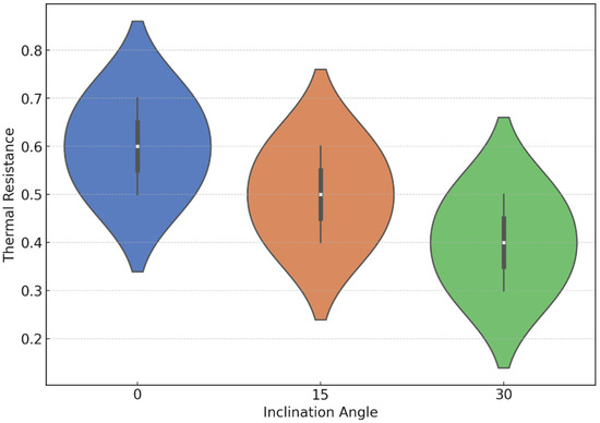 Figure 19). At 0°, the median TR was approximately 0.65 °C/W, decreasing to approximately 0.50 °C/W at 30°, representing a 23% reduction. The variability in values remained relatively consistent across all angles, indicating that inclination angle plays a secondary but measurable role in improving thermal performance [