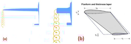 (a) Wingtip vortices at different aspect ratios of wing [26] and (b) wing taper [27].