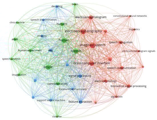 Bibliometric network using keywords such as imagined speech, EEG, and classification in Scopus.