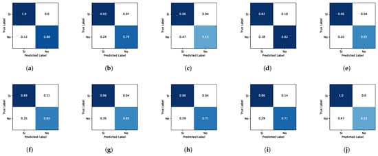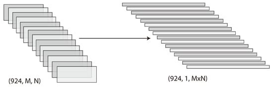 A graphical interface was developed that randomly plays the words through speakers while the user imagines speaking the word for 8 s, during which the device records EEG signals. The subject was required to remain still with their eyes closed. Then, the recorded 8 s signals were divided into 1 s segments (128 frames each) with an overlap of 48 frames. The dataset contains 4044 instances for the nine classes (8 Spanish words and a blank state of mind). However, it was filtered only to use two simple words, /Sí/ and /No/, with 444 and 480 instances, respectively; therefore, there are 924 instances, so we have a tensor with the form (924, 14, 128). Figure 4 shows an example of this. A class balance was not performed since they are practically balanced. The data were divided into training and test sets with a proportion of 80–20%.