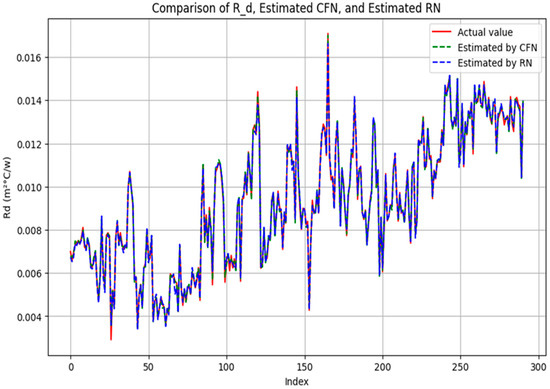 To further assess the differences in performance between the two models, the standard deviation of errors was analyzed. The results show that CFN has a lower standard deviation (7.66 × 10−5) compared to RN (1.14 × 10−4), indicating that CFN provides more stable and reliable predictions. Furthermore, error histogram analysis reveals that CFN has a higher concentration of smaller errors, reinforcing its superior accuracy in estimating fouling resistance. Future work could include a formal statistical significance test, such as a paired t-test, to further validate these findings quantitatively.