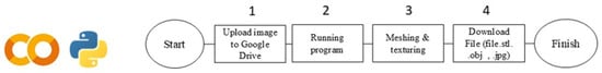 Figure 5 illustrates the workflow for creating a 3D model of an object using AI. The process consists of several key steps, beginning with gathering images of the object to be reconstructed. These images are then uploaded to a designated folder in Google Drive, ensuring they are accessible for further processing. Next, the AI-based program is executed within Google Colab, leveraging cloud-based computing power to process the images efficiently. Following this, the system performs meshing and texturing to generate a structured 3D representation of the object with realistic surface details. Finally, users can download the generated 3D model in various file formats, such as STL, OBJ, or JPG, making it suitable for applications like 3D printing, rendering, or further digital modifications. The structured workflow streamlines the transformation of 2D images into a detailed 3D model using AI-powered techniques.
