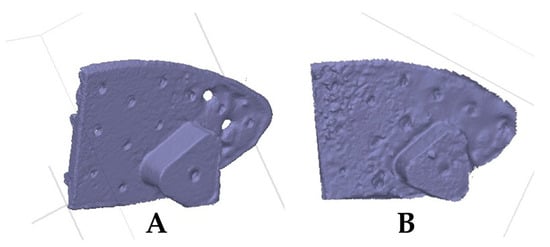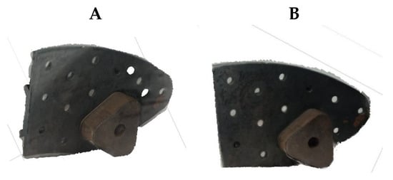 In comparison, traditional 3D scanning methods use costly laser scanners and high-end metrology tools, while mobile photogrammetry provides a more affordable alternative by applying smartphones or consumer-grade cameras [,,,]. Recent advancements in computational photography and Artificial Intelligence (AI) have significantly improved mobile photogrammetry, serving as a practical tool for various engineering applications [,]. By using mobile devices, engineers can capture images of the brake pad from multiple perspectives, ensuring comprehensive coverage for accurate 3D reconstruction [,]. These images are processed using specialized software such as Agisoft Metashape, which applies structure-from-motion (SfM) and Multi-View Stereo (MVS) algorithms to generate a dense point cloud, and convert into a 3D mesh [,]. Additionally, AI algorithms refine models by correcting distortions, filling in missing data, and improving geometric accuracy [,,].