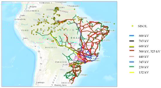 Within this context, it is important to examine how electrical energy is distributed across the Brazilian territory. In Brazil, the National Interconnected System (SIN) is responsible for supplying most of the country’s electrical energy. The system connects all states except Roraima. This interconnection allows consumers connected to SIN to be served with greater reliability, as it minimizes all risks of interruption while also enabling the regional complementarity of renewable sources [4]. However, in the states belonging to the northern region, SIN coverage [4] is still limited to capitals and metropolitan areas. In municipalities where connection to SIN is challenging due to technical and economic reasons, electrical energy is supplied through isolated systems (SISOL) [4]. Figure 1 contains information about the location of SISOL and SIN in Brazil.