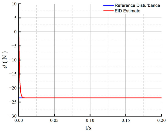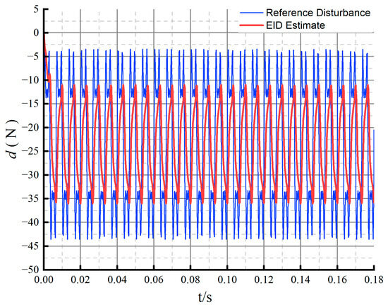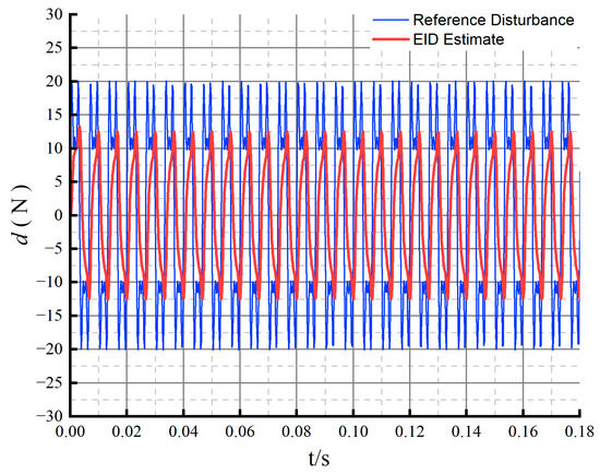 When adding linear disturbances, periodic disturbances, and composite disturbances, the estimated value of EID and the actual disturbances are shown in Figure 9, Figure 10 and Figure 11. From these figures, it can be seen that the EID system well estimates the linear disturbances and exhibits good estimate performance for the periodic disturbances in the system.