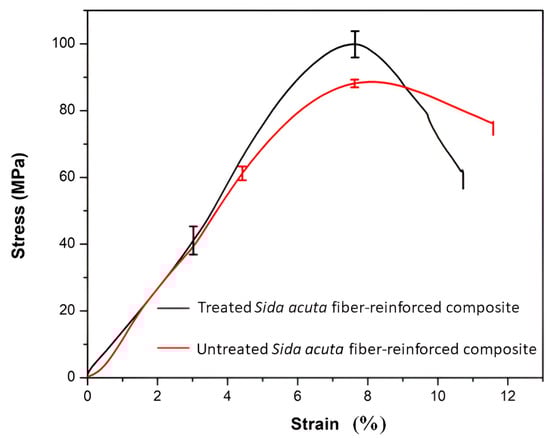 Compression test stress–strain diagram of treated and untreated Sida acuta fiber-reinforced composite.