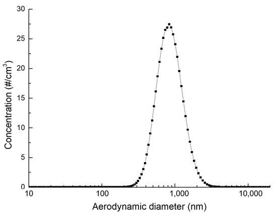 DMA is used to select particles by their electrical mobility. Besides the mobility, the diameter of particles exiting from the DMA also depends on the particle’s charge number. Singly charged particles with the chosen mobility diameter and bigger particles with multiple charges were generated. For small particles (<100 nm), the singly charged particles were much more than the multiply charged particles [39], so most of the generated particles were monodisperse.
