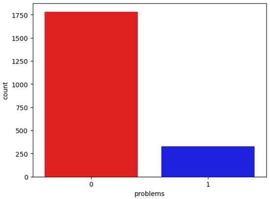 This study utilized the GHPR imbalanced dataset from Kaggle [19]. The dataset comprises twenty-two features for analyzing software defects. Of these, twenty-one are independent features, while one is a dependent feature indicating the presence of software defects. The GHPR dataset contains a total of 2109 instances, with a class distribution of 326 instances featuring faults and 1783 instances without faults. In the dataset, a value of 1 represents a fault, while a value of 0 indicates no fault. Figure 2 illustrates the distribution of faults along with the corresponding values for the fault-free dataset.