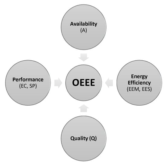 Furthermore, OEEE addresses the limitations of classical OEE by explicitly incorporating energy consumption, thus responding to the growing demand for performance metrics that reflect environmental considerations. Its formulation draws upon recent academic advancements in KPI extensions for sustainability (e.g., OSEE, OEEM) and leverages established standards, such as ISO 25745, for consistent energy performance assessment [49,50].