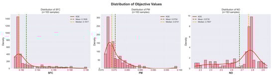 m = 163 non-dominated operating points. This number represents the final population of optimal trade-off solutions identified by the algorithm. The performance values of these 163 alternatives for the three criteria are structured into the decision matrix