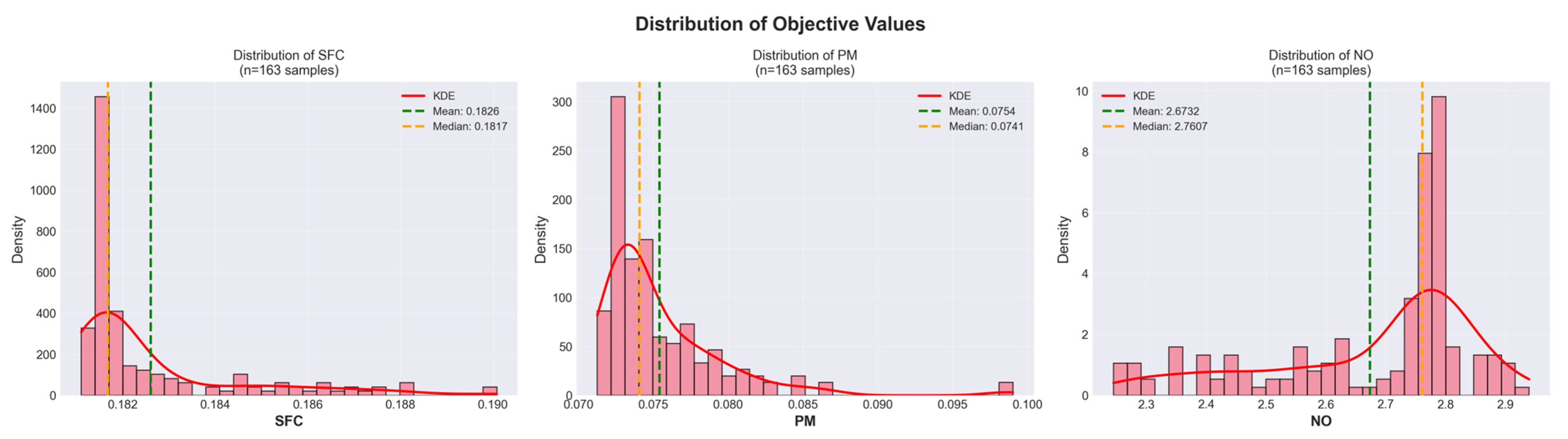 The present study does not re-formulate or solve the underlying engine optimization problem. Instead, it operates on a previously generated, constrained Pareto front based on our earlier work [