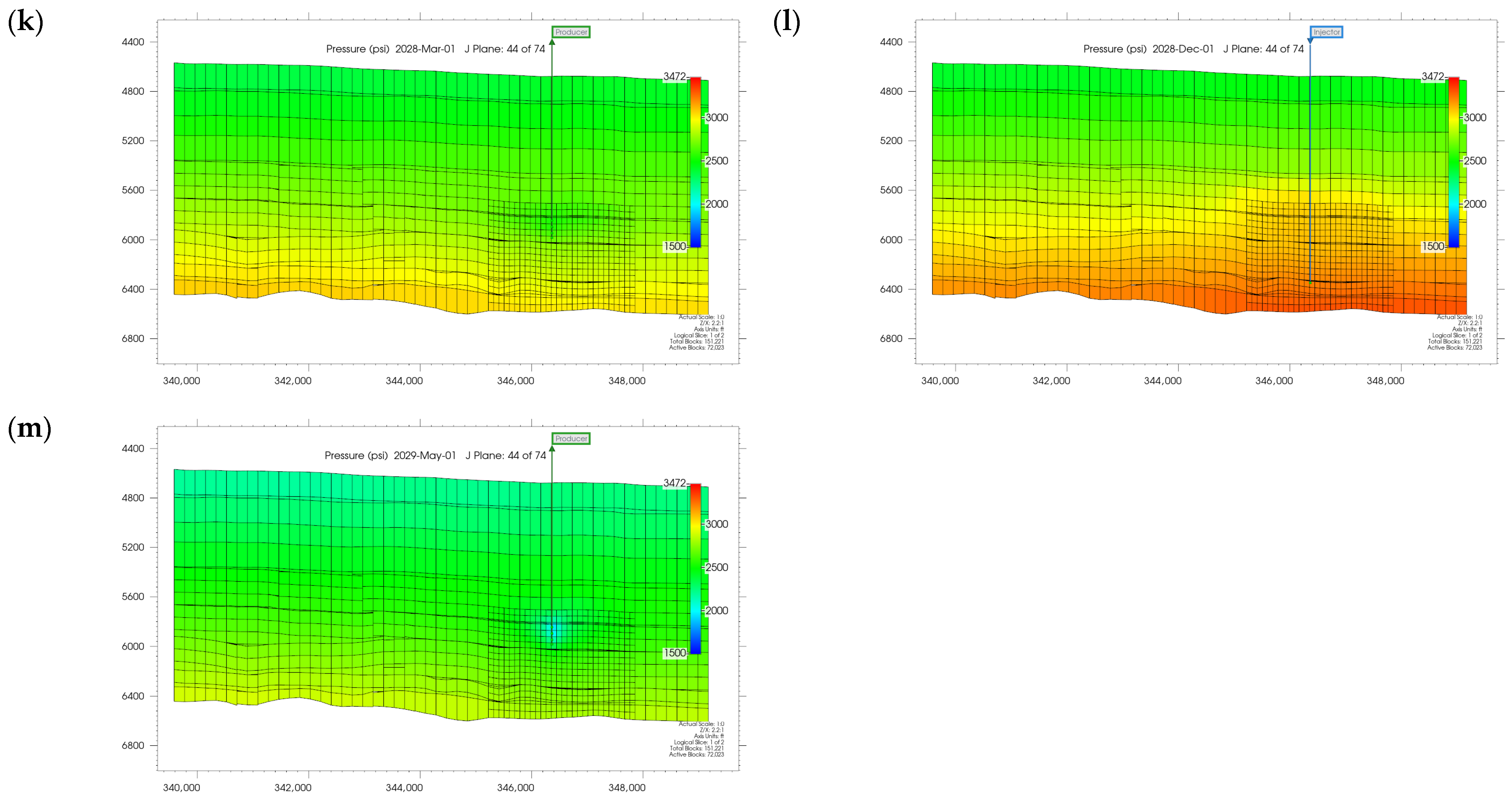 3.2. Effect of Injection Well Perforation Location on Withdrawal Efficiency
