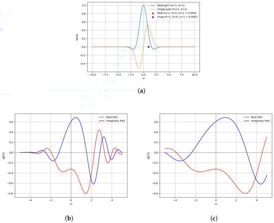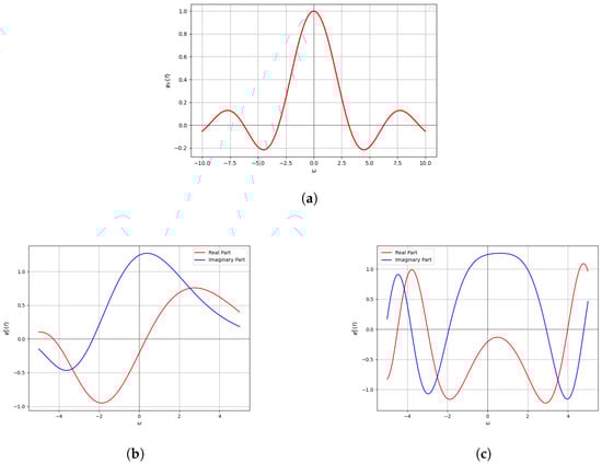 Comparison of characteristic function and LCCF. (a) characteristic function of (56); LCCF of Example 1 with (b) , , ; (c) . This shows that the LCCF is more flexible and superior to the classical characteristic function.