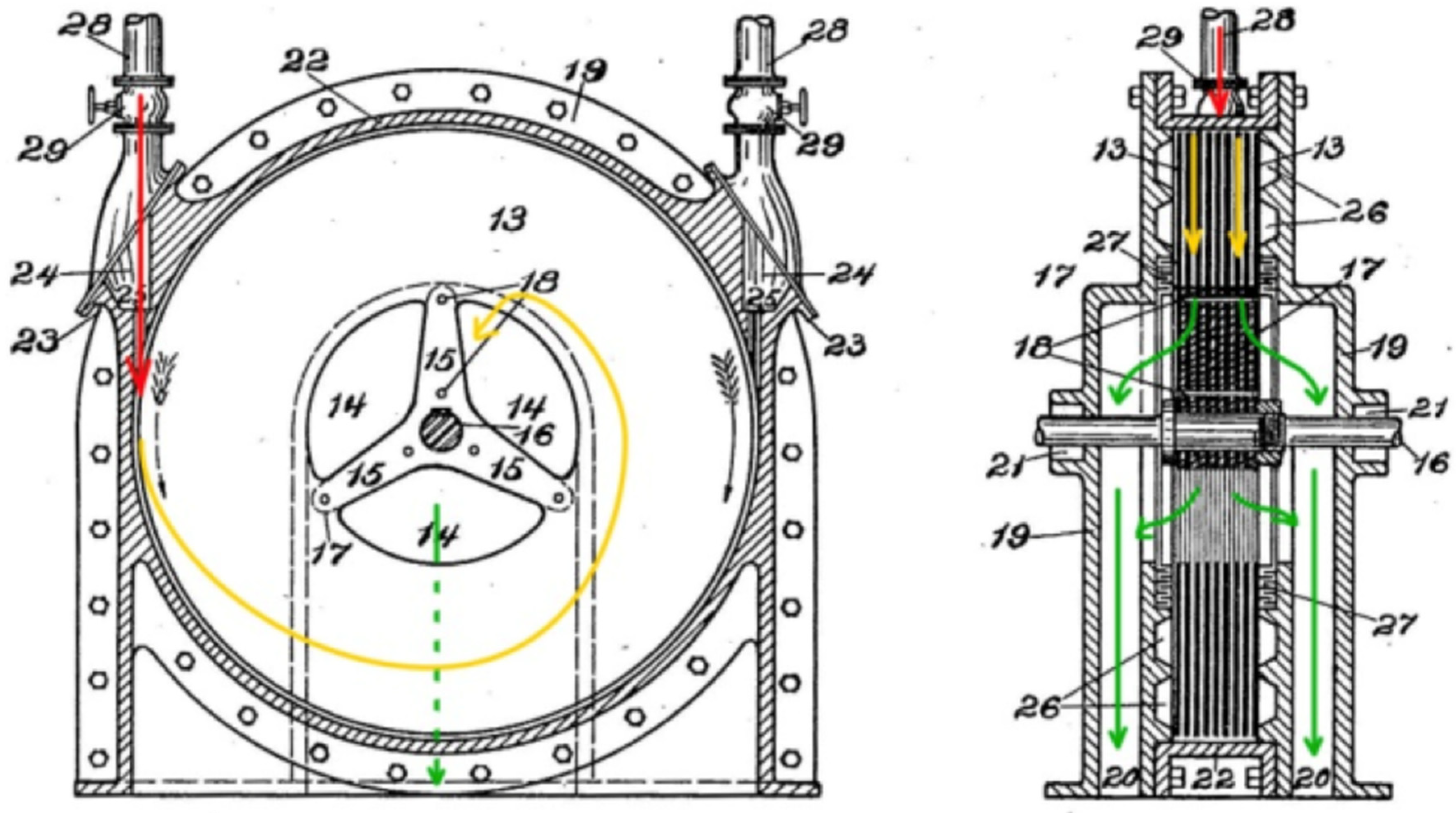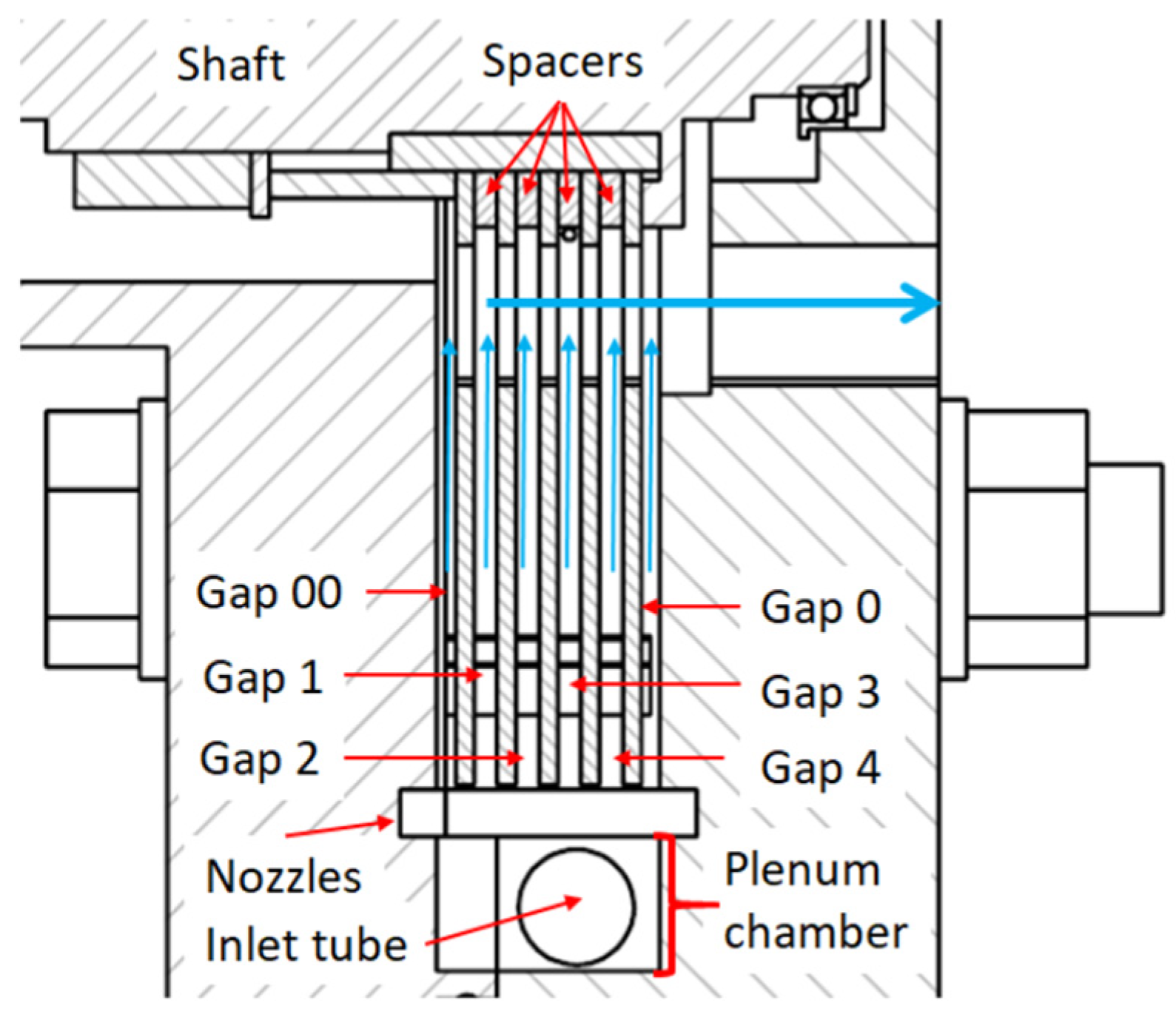 | Theoretical efficiencies (by CFD): | up to 40–60% * | Difficulty in maintaining uniform spacing (0.2–1 mm) | Simple construction (no blades) |