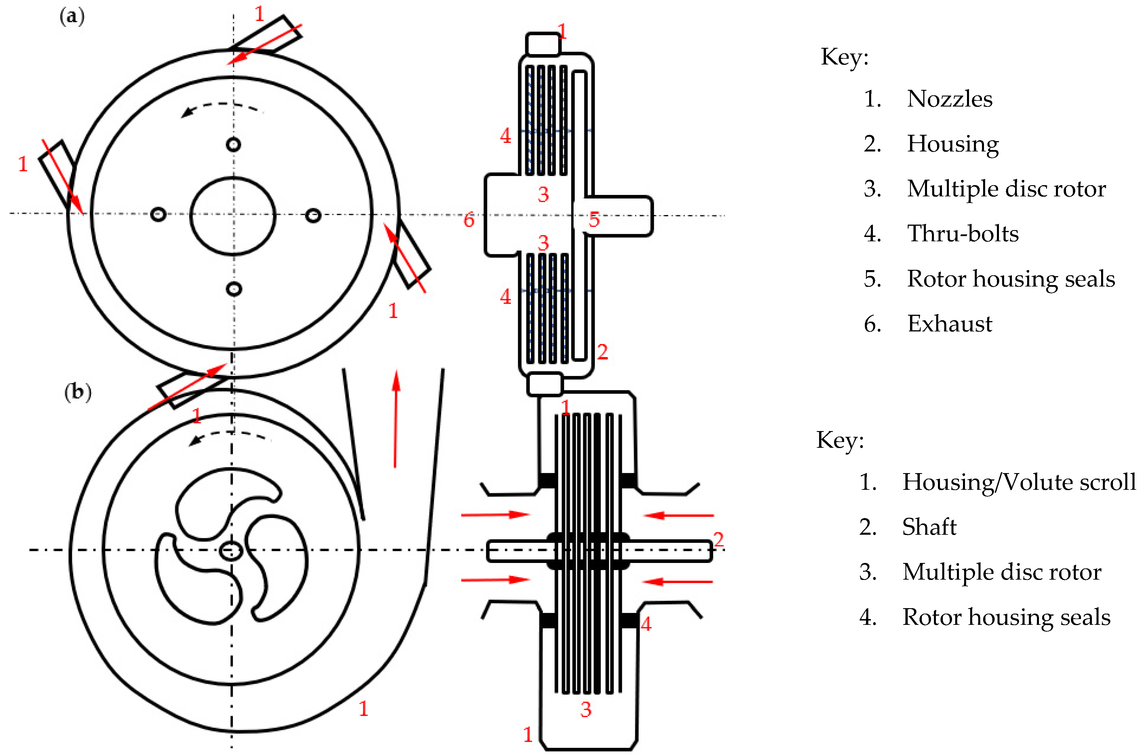 | Mechanical efficiencies | 5–20%. | High viscous losses in the boundary layer between discs | Silent operation |