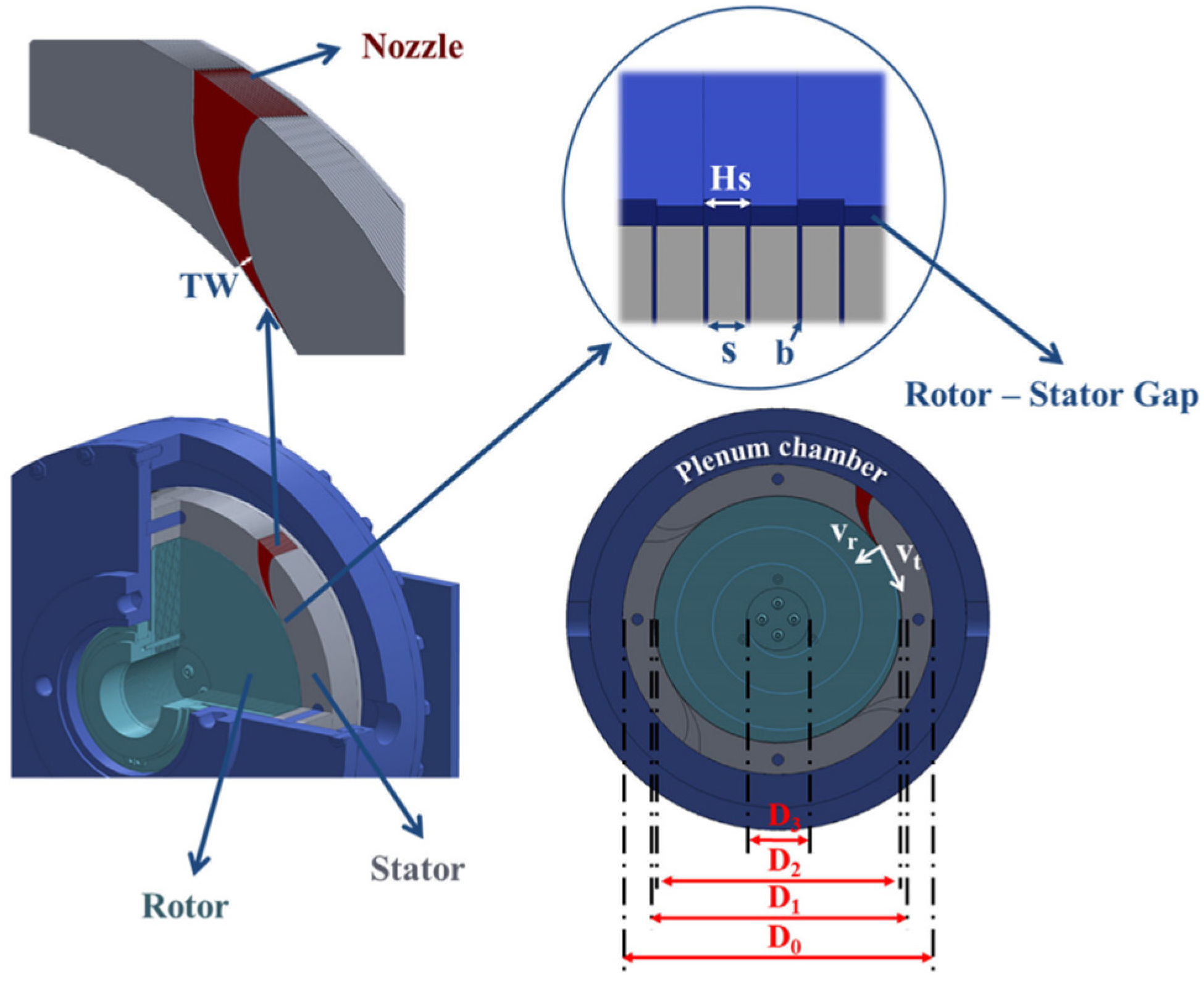 - Neckel, A.; Godinho, M. Influence of geometry on the efficiency of convergent–divergent nozzles applied to Tesla turbines. Exp. Therm. Fluid Sci. 2015, 62, 131–140. [Google Scholar] [CrossRef]