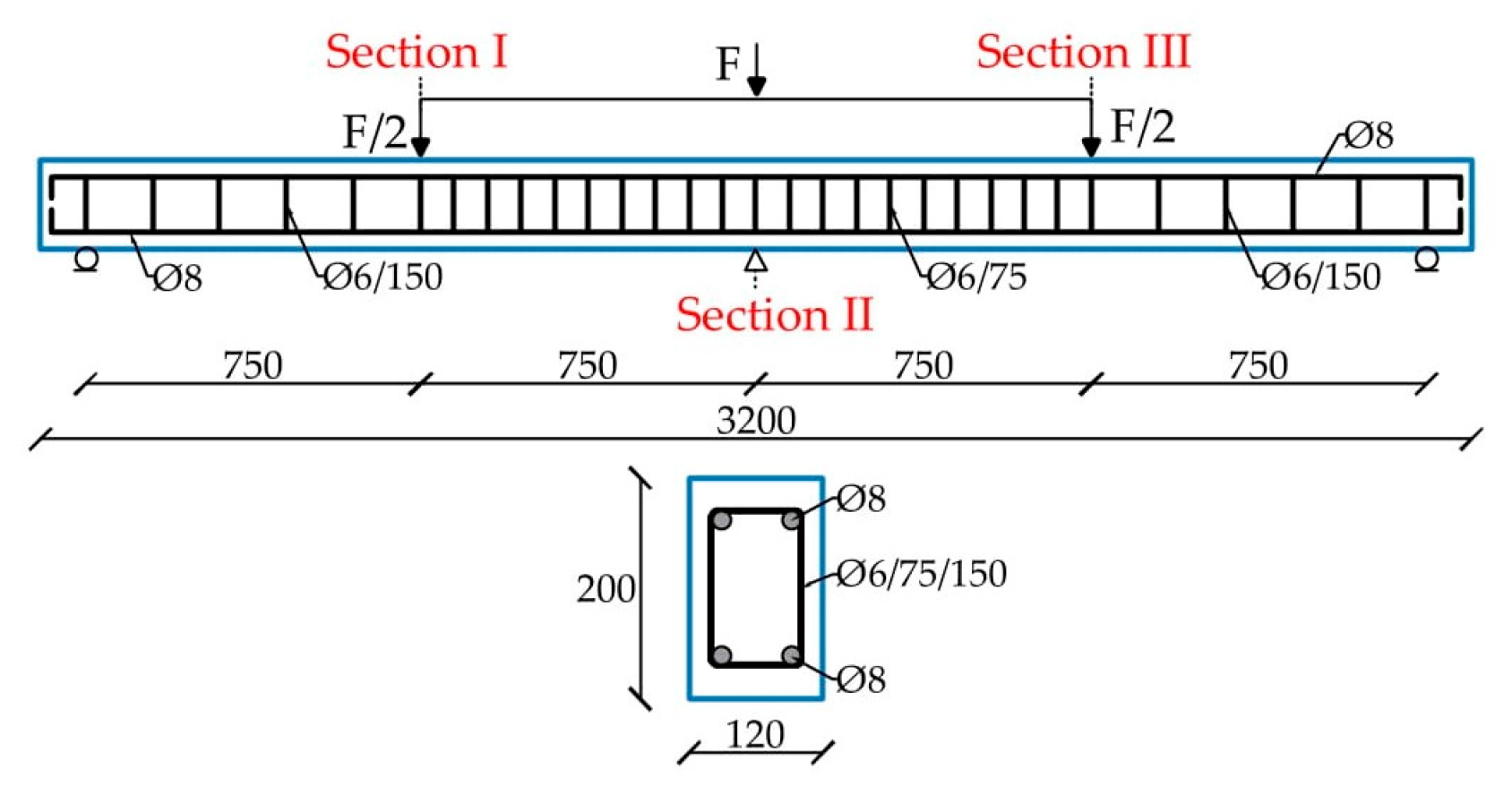 | Dimension (mm) | Ø8—longitudinal Ø6—stirups | Ø10 |