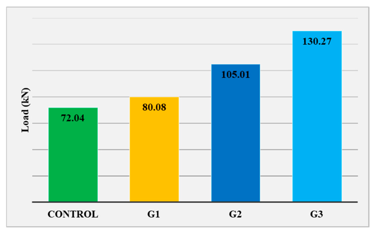 - Influence on ductility: While NSM strengthening enhances stiffness and strength, it also tends to reduce ductility. The beam with combined top and bottom reinforcement (G3) reached the highest load capacity but exhibited brittle and sudden failure.
