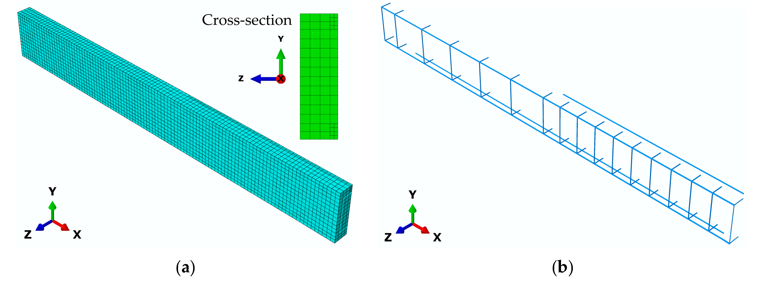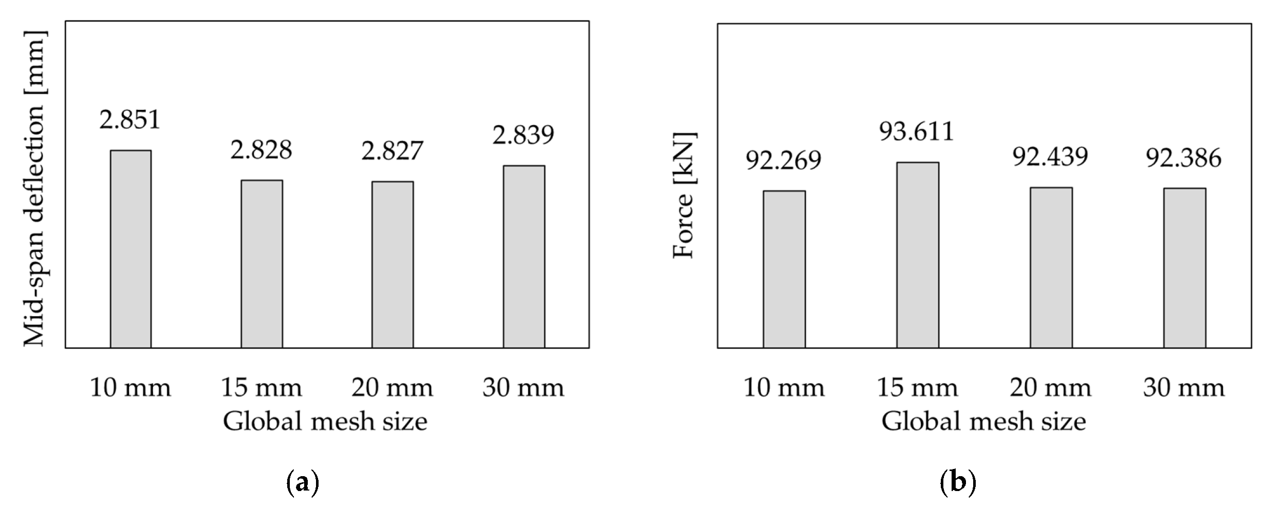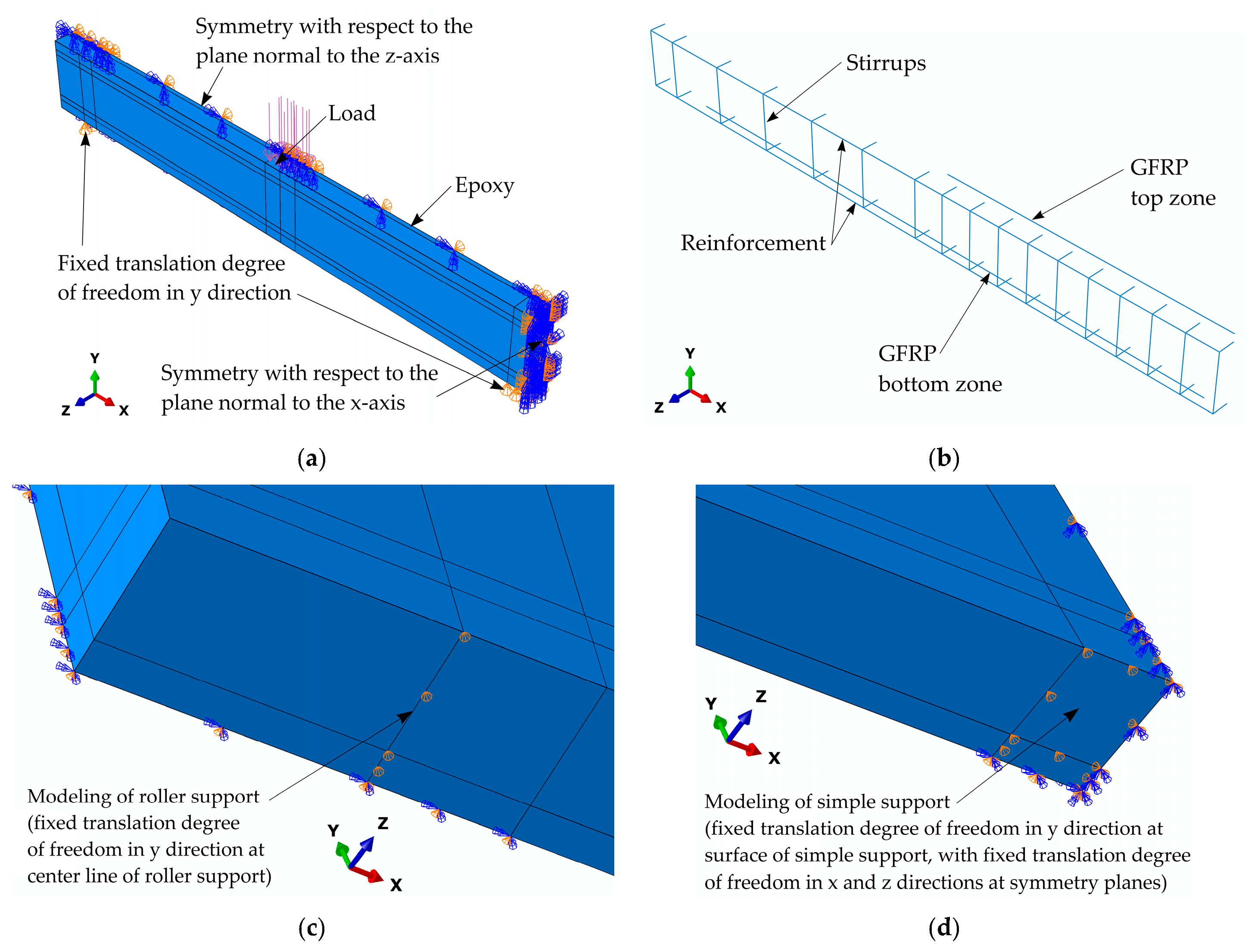 - Sümer, Y.; Öztemel, M. Investigation of the Effect of GFRP Reinforcement Bars on the Flexural Strength of Reinforced Concrete Beams Using the Finite Element Method. Fibers 2025, 13, 125. [Google Scholar] [CrossRef]