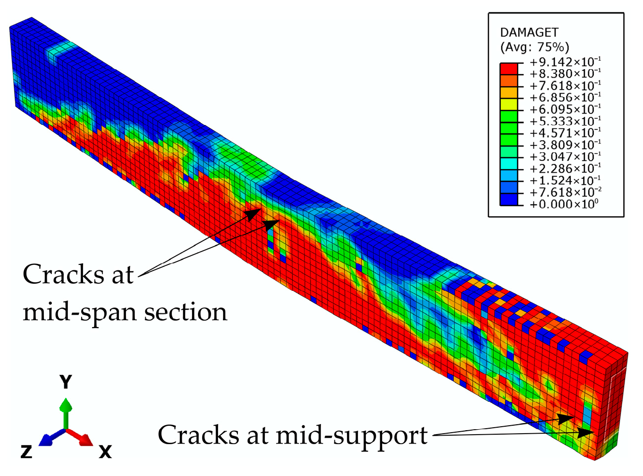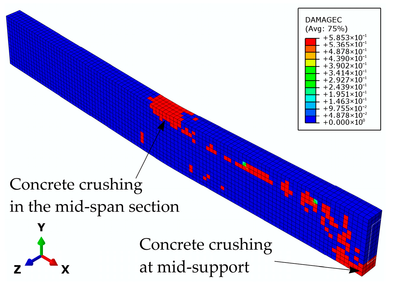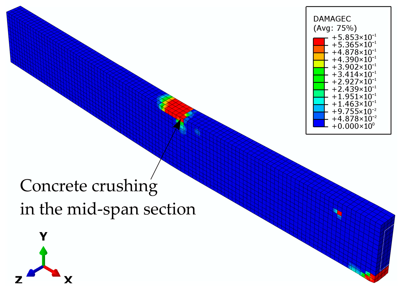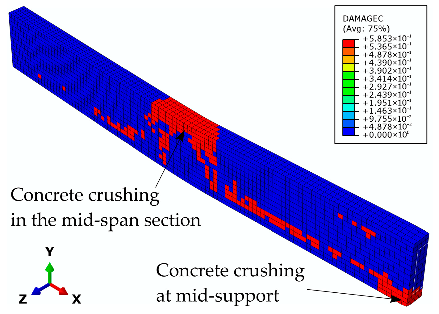 - Sakr, M.A.; Khalifa, T.M.; Mansour, W.N. External Strengthening of RC Continuous Beams Using FRP Plates: Finite Element Model. In Proceedings of the Second International Conference on Advances in Civil, Structural and Mechanical Engineering—CSM 2014, Birmingham, UK, 1–2 June 2014; ISBN 978-1-63248-054-5. Available online: https://theired.org/conference/paper/external-strengthening-of-rc-continuous-beams-using-frp-plates-finite-element-model-1138 (accessed on 6 January 2026).